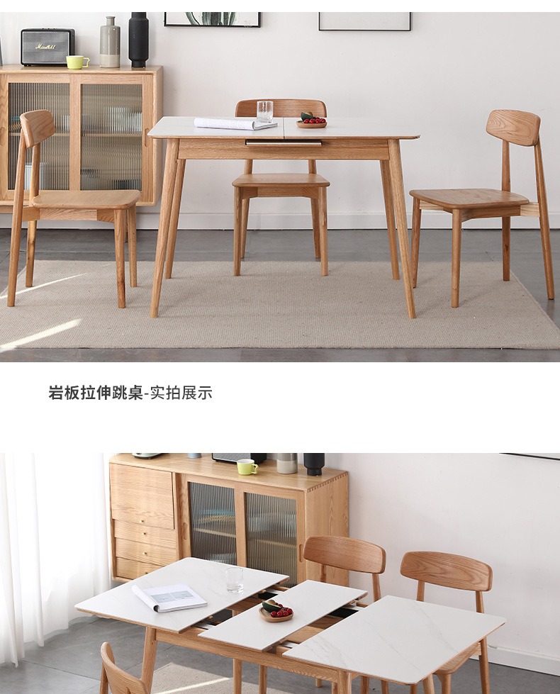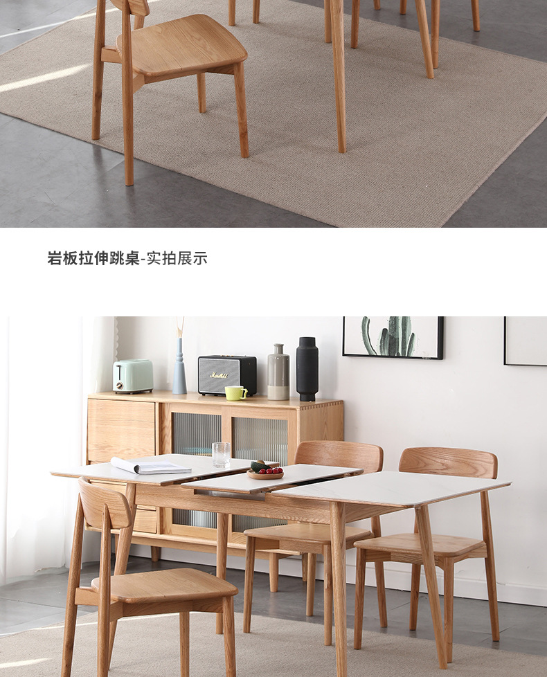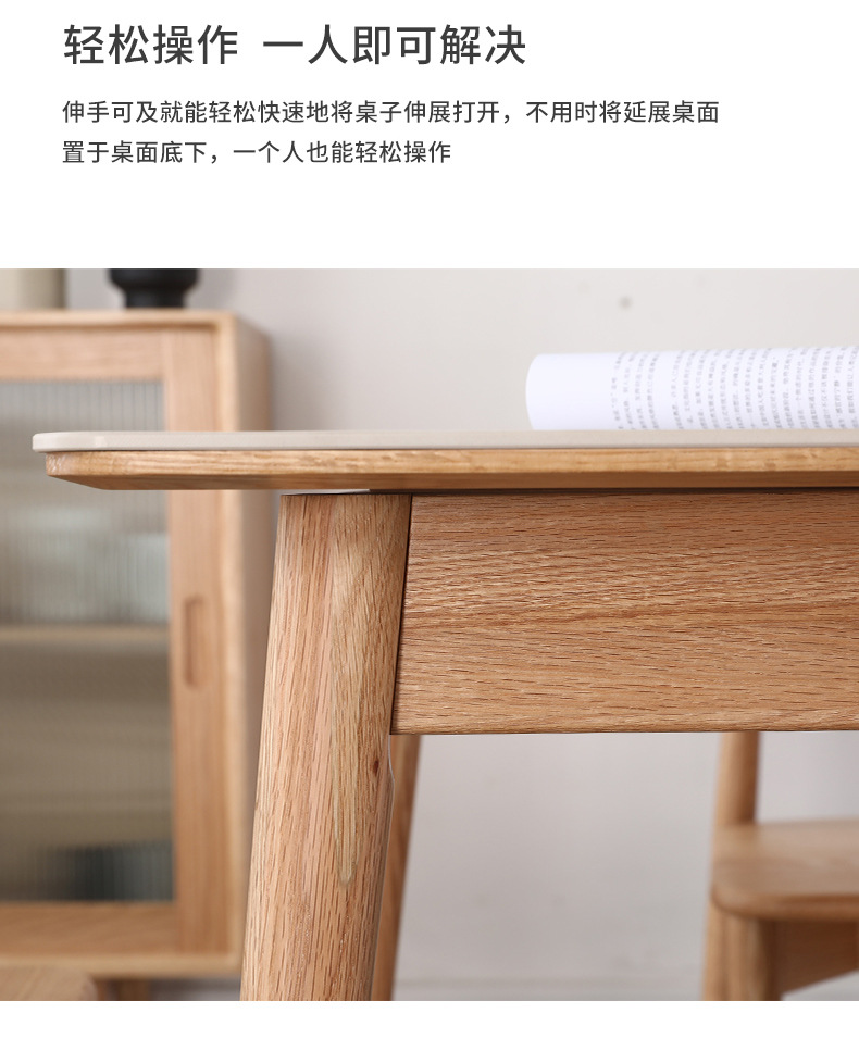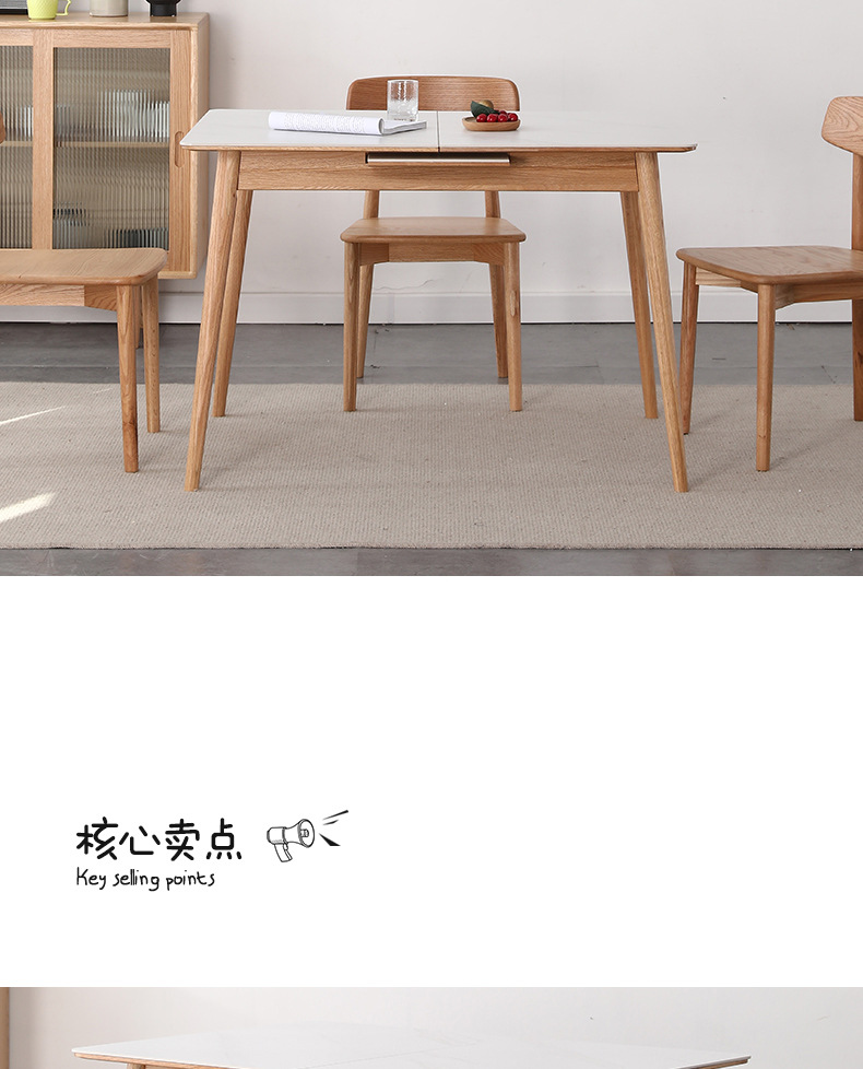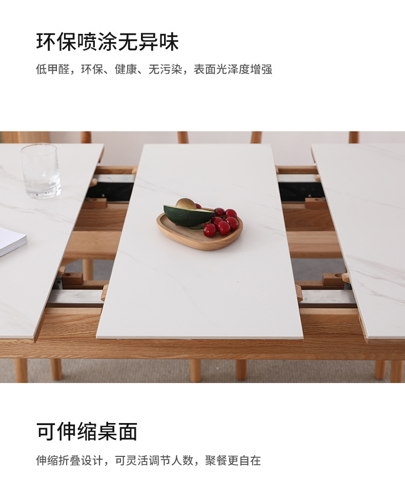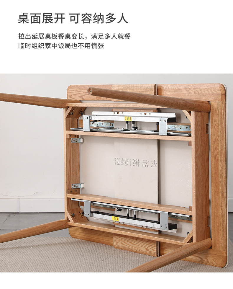 Đá phiến có thể thu vào bàn ăn gỗ sồi, gia đình phòng nhỏ, bàn ăn hình chữ nhật, bàn gấp Bắc Âu gỗ nguyên khối co dãn nền tảng.