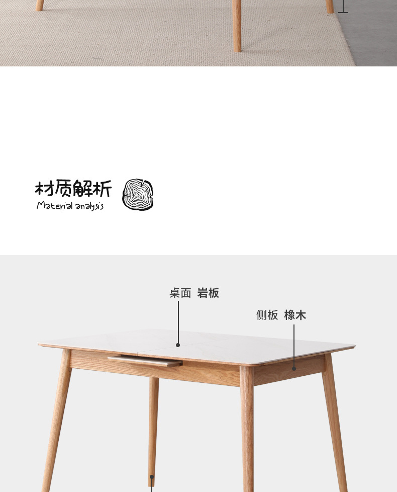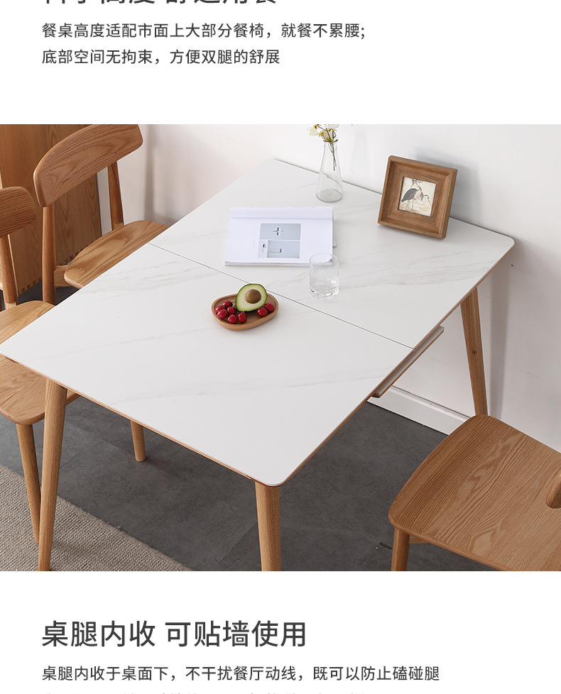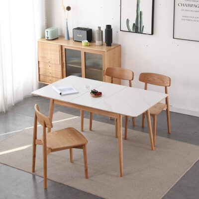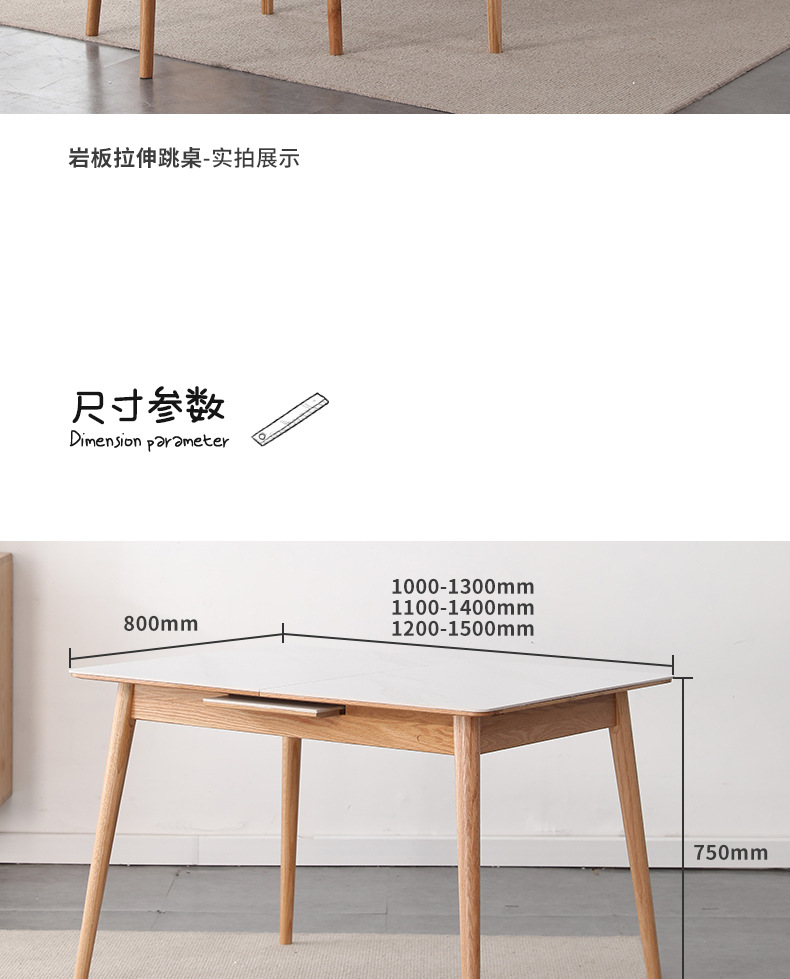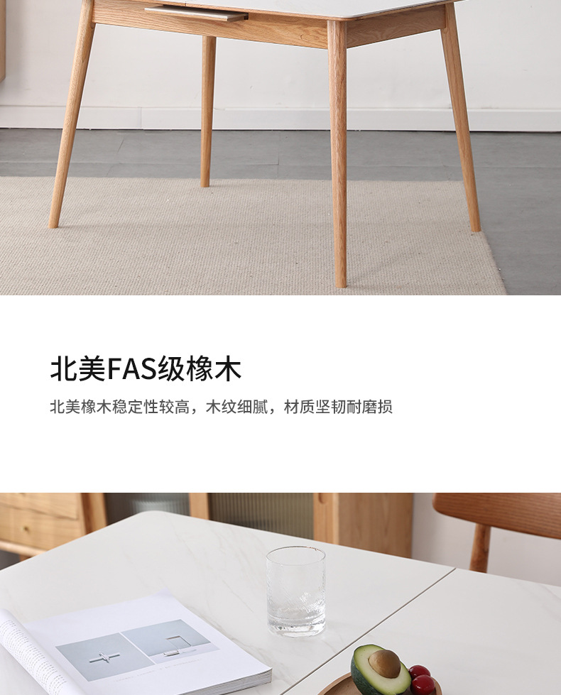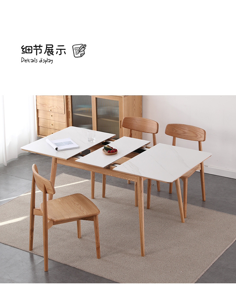 Đá phiến có thể thu vào bàn ăn gỗ sồi, gia đình phòng nhỏ, bàn ăn hình chữ nhật, bàn gấp Bắc Âu gỗ nguyên khối co dãn nền tảng.