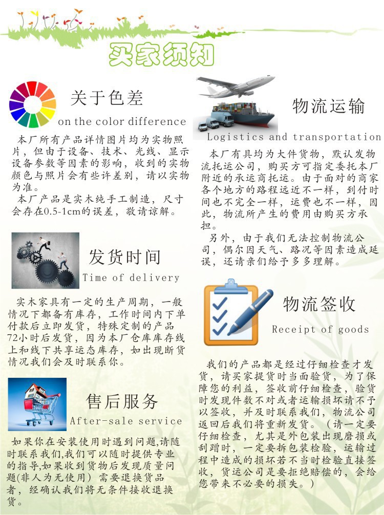 有现货的家具,我们会按照订单顺序72小时之内发货! 需定制颜色或尺寸的,具体货期请跟客服联系~ 店铺默认运费为单件,购买多件家具请联系客服查询实际所需费用~ 本公司店铺支持一件代发,自有大型库存、稳定货源; 我们公司分为两大部分,“诚丰家具公司”/“木泽家居公司”, |