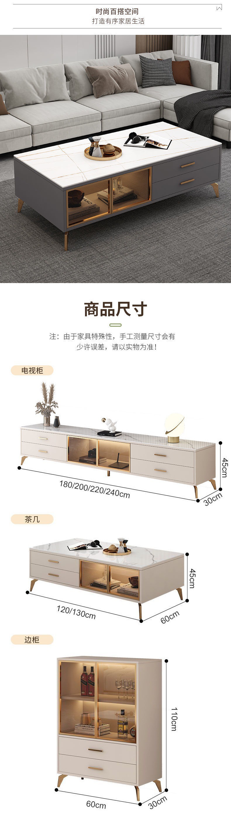 Đá phiến nhẹ sang trọng Tủ Tivi bàn cà phê kết hợp hiện đại nhỏ gọn căn hộ nhỏ nhà gỗ nguyên khối phòng khách tủ Tivi sàn tủ