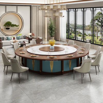 Đá phiến phong cách Trung Quốc mới với bàn xoay tự động khách sạn bàn tròn lớn nhà hàng khách sạn hộp câu lạc bộ bàn ăn gỗ nguyên khối bàn lẩu