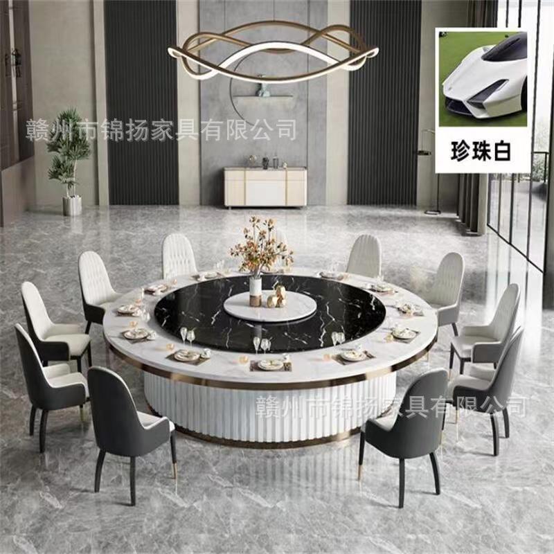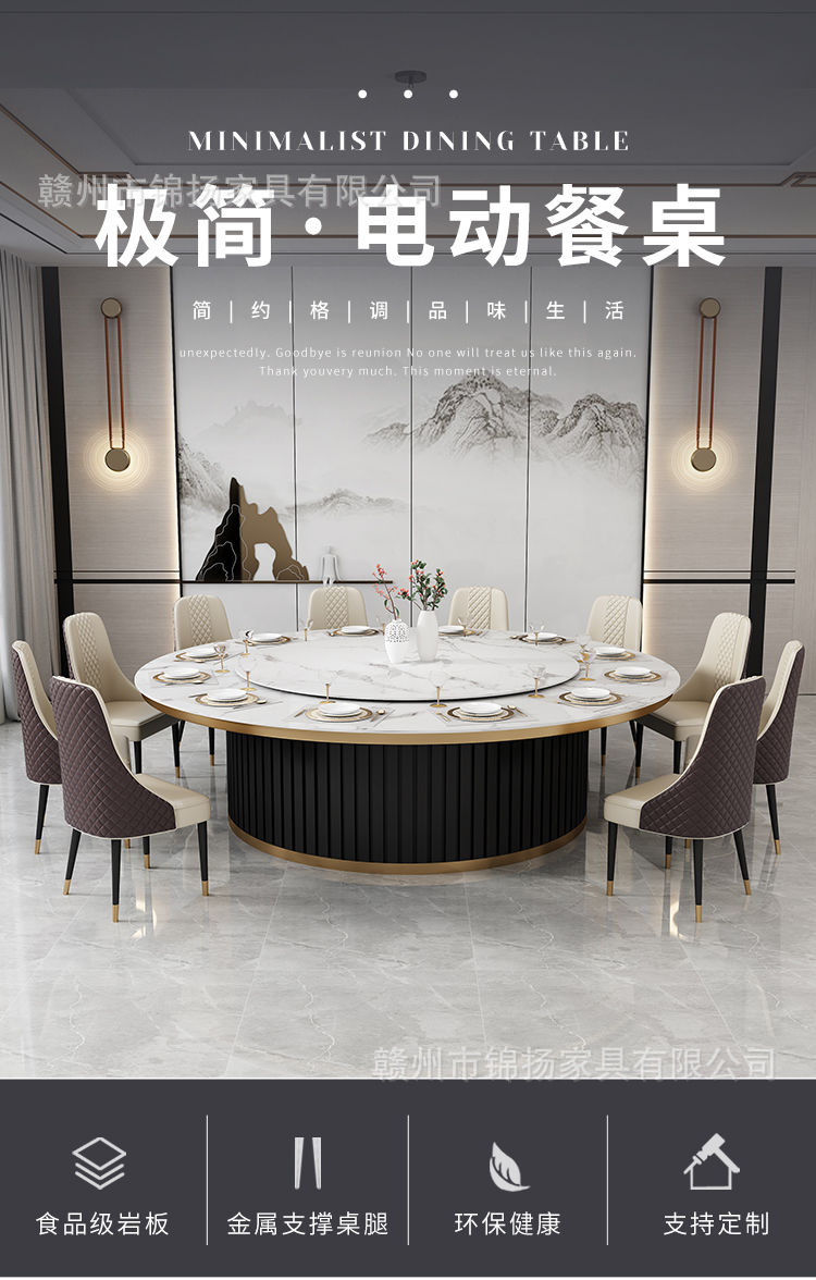 Đá phiến xoay tự động bàn ăn khách sạn bàn ăn ánh sáng đơn giản sang trọng lớn bàn tròn khách sạn hộp nhà hàng nhà phòng khách bàn ăn