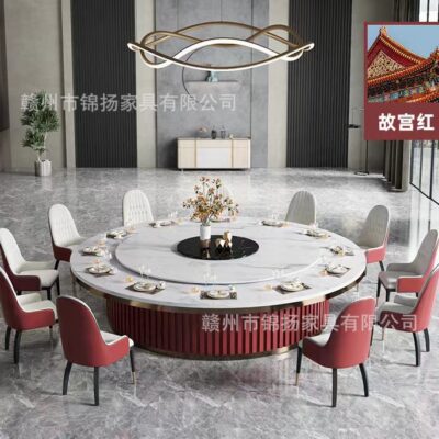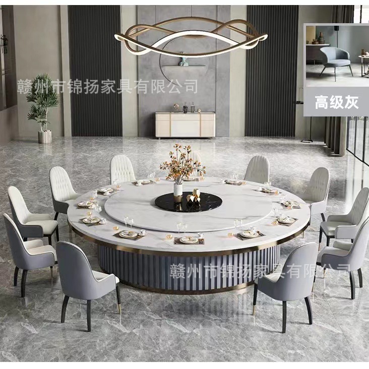 Đá phiến xoay tự động bàn ăn khách sạn bàn ăn Hàng đẹp đơn giản sang trọng lớn bàn tròn khách sạn hộp nhà hàng nhà phòng khách bàn ăn