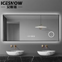 Dạ quang chống sương mù vuông khách sạn gương thông minh gương phòng tắm gương treo tường phòng tắm rửa phòng tắm đèn led gương trang điểm