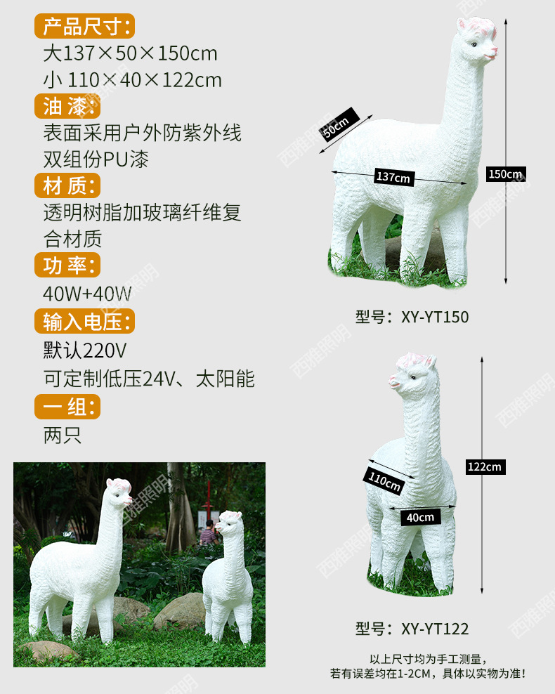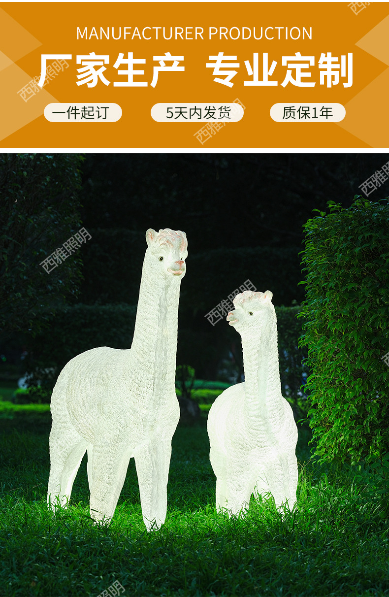 Nơi xuất xứ: Guzhen Số sản phẩm: Đèn FRP Thương hiệu: Xiya Lighting Model: Đèn Alpaca phát sáng Phạm vi ứng dụng chính: Đèn bàn cắm trại khách sạn nổi tiếng ở nông thôn Lễ hội khách sạn Chiếu sáng cảnh quan Sân vườn Công viên danh lam thắng cảnh Dự án trại Chiếu sáng Có bằng sáng chế: Không Thông số kỹ thuật: Lớn: 137 * 50 * 150cm Alpaca đực / Nhỏ: 110 * 40 * 122cm Alpaca cái / Nhỏ: 110 * 40 * 122cm Chứng nhận Alpaca cái : Không có Số thứ tự: Đèn Alpaca ngoài trời Nền tảng hạ nguồn chính: eb ay/Amazon/wish/AliExpress/independent station/LAZADA/LAZADA có thương hiệu riêng có thể được ủy quyền: có, người nộp thuế chung: có