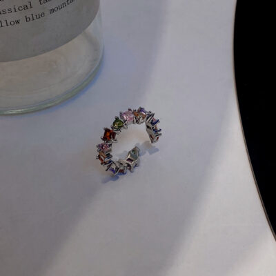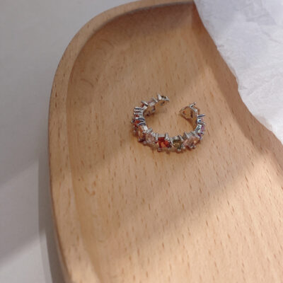 Đá quý đầy màu sắc sáng bóng mở nhẫn nữ có thể điều chỉnh toàn bộ zircon đầy màu sắc thiết kế thích hợp không khí đồ trang sức tay