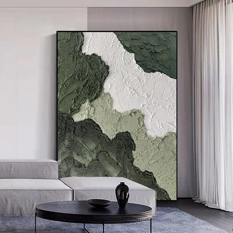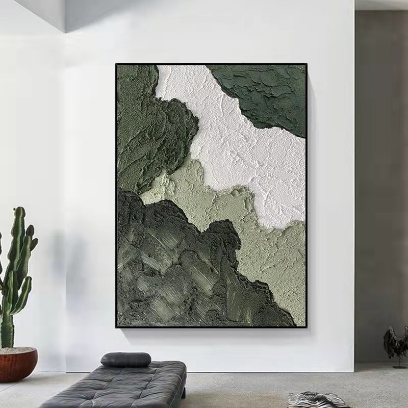 Đá sa thạch vẽ tay sofa phòng khách nền bức tranh trang trí tối giản hiện đại wabi sabi gió màu xanh lá cây kết cấu ba chiều hiên treo bức tranh
