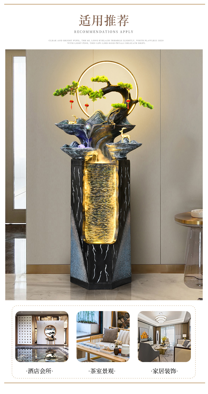 Đài phun nước chảy kiểu Trung Quốc mới trang trí sàn phòng khách đồ trang trí lớn câu lạc bộ cảnh quan văn phòng quà tặng khai trương