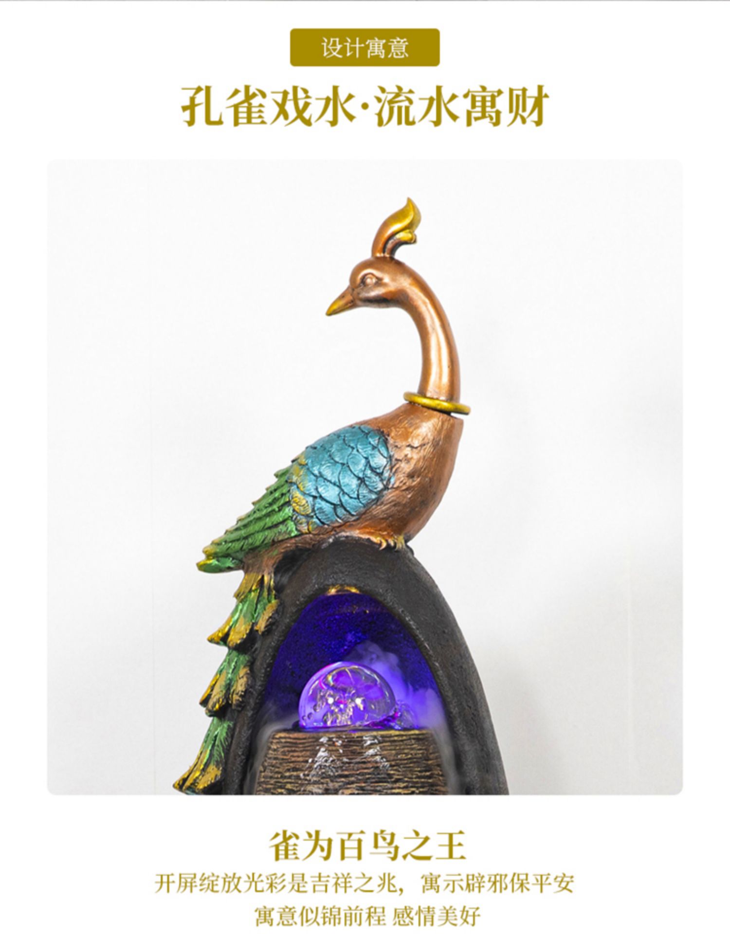 Đài phun nước phòng khách lưu thông nước phụ kiện nhà chim công kiếm tiền trang trí phong cảnh tủ tivi cạnh sàn đồ trang trí