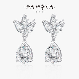 达米拉s925纯银结婚首饰甜美三叶花锆石耳钉女式婚礼晚宴新娘耳饰
