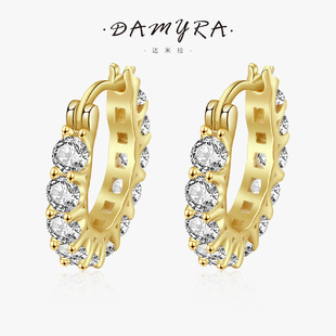 达米拉新款s925纯银圆形耳环女欧美轻奢镶钻锆石耳饰热销跨境批发
