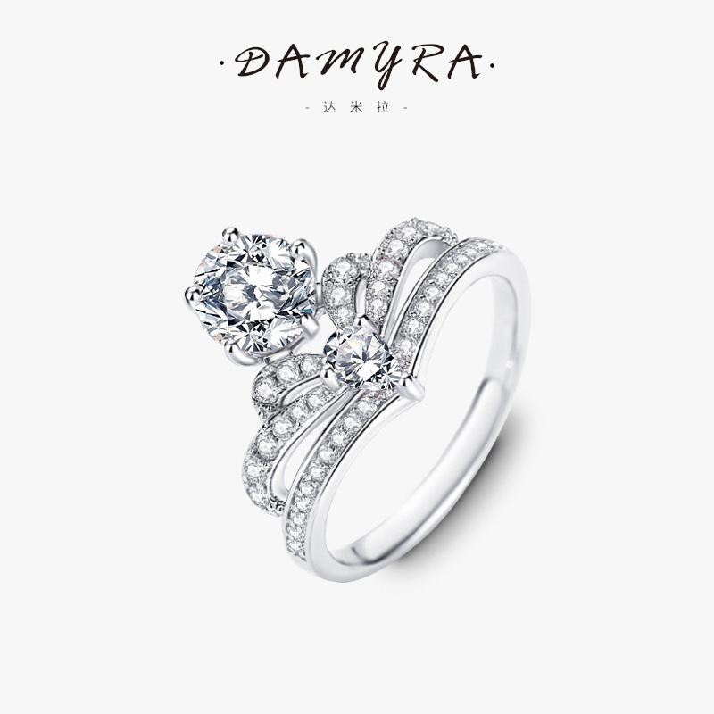Damira 1 carat moissanite nhẫn nữ vương miện 925 sterling bạc châu Âu và Mỹ ánh sáng sang trọng tất cả các trận đấu nhẫn nguồn bán buôn