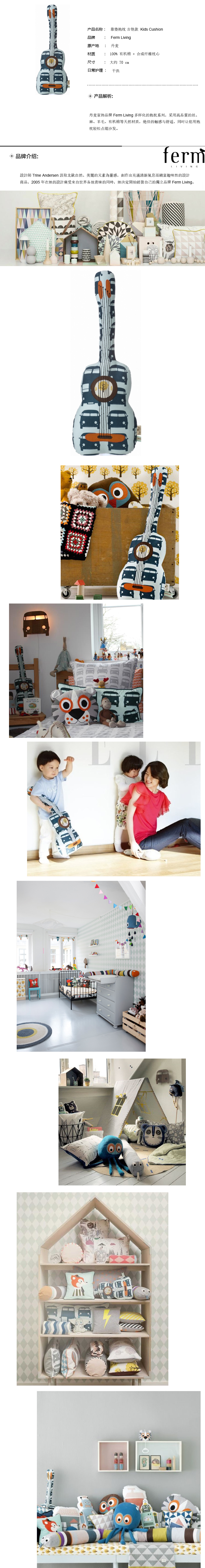 Đan Mạch ferm Living bộ đồ giường trẻ em bộ đồ giường đệm gối guitar quà tặng điểm