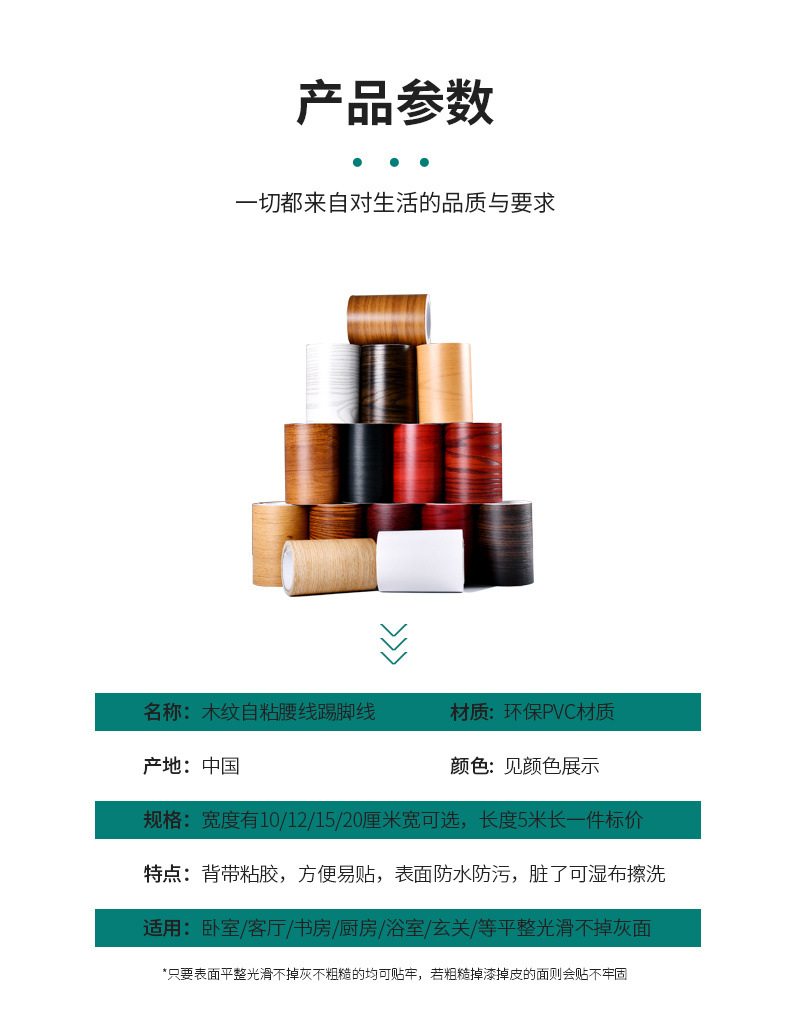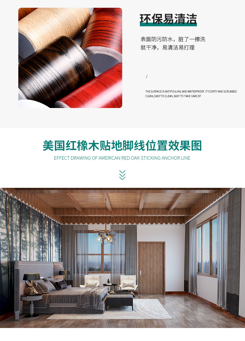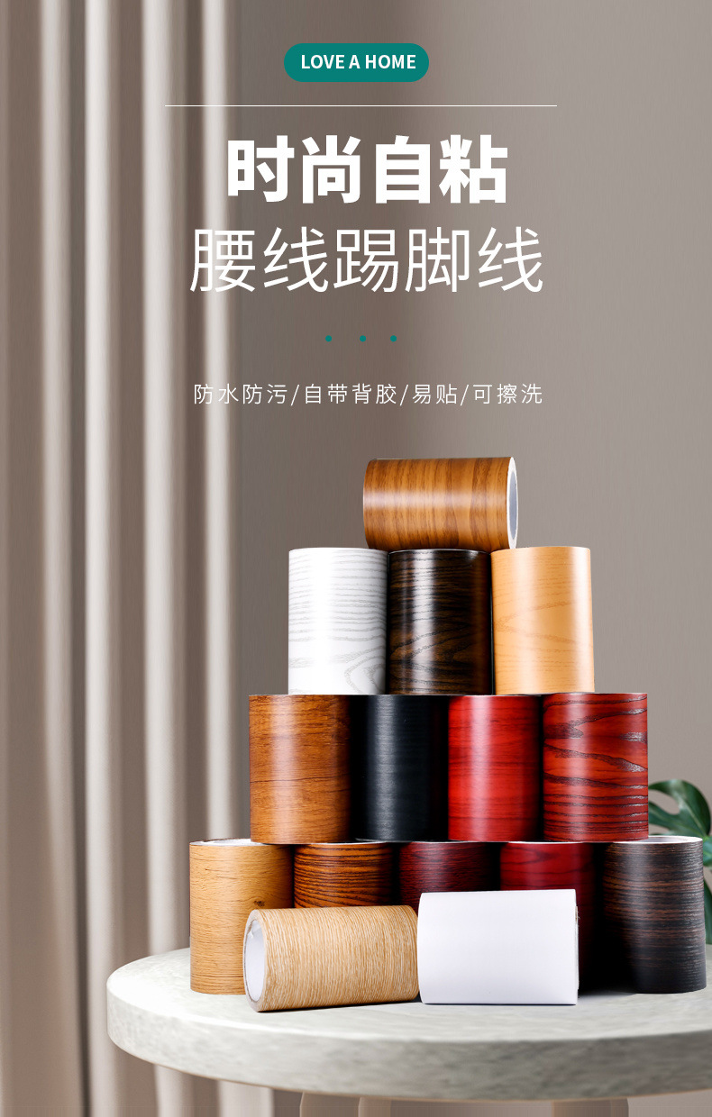 Dán tường tự dính bán buôn giả vân gỗ ốp chân tường phòng khách phòng ngủ góc đường trang trí nhãn dán PVC phong cách đơn giản ký gửi