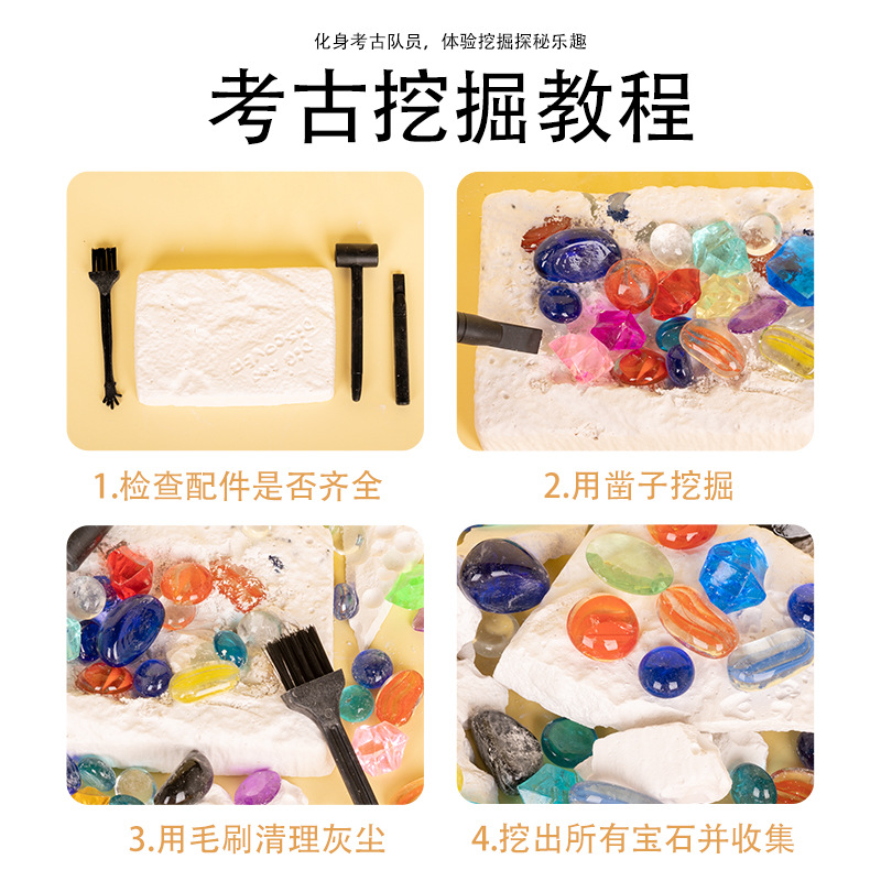 Đào đá quý và săn tìm kho báu đồ chơi đào khảo cổ học cho trẻ em đá quý đầy màu sắc mẫu giáo handmade tự làm hộp mù đào kho báu