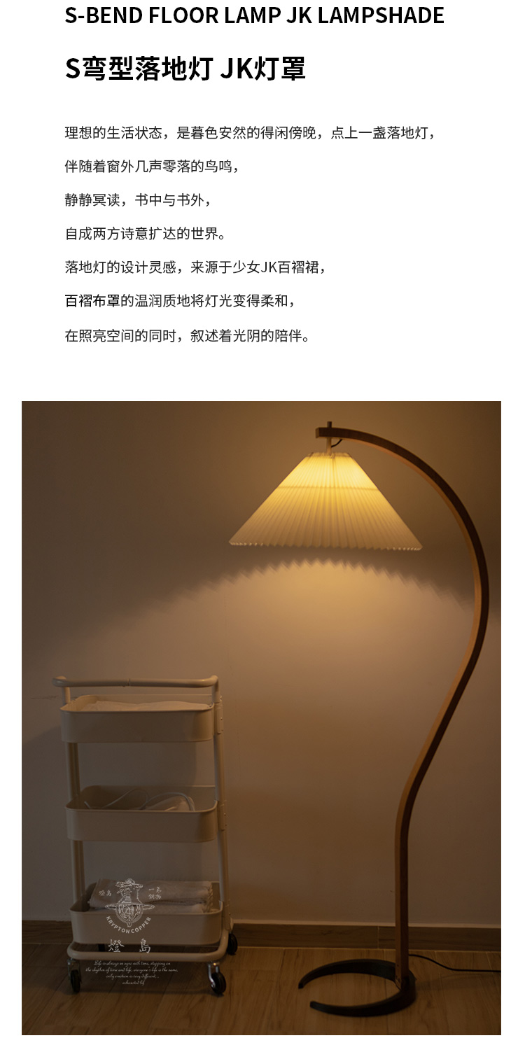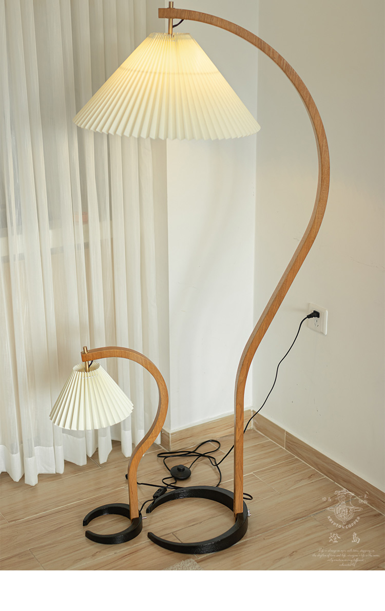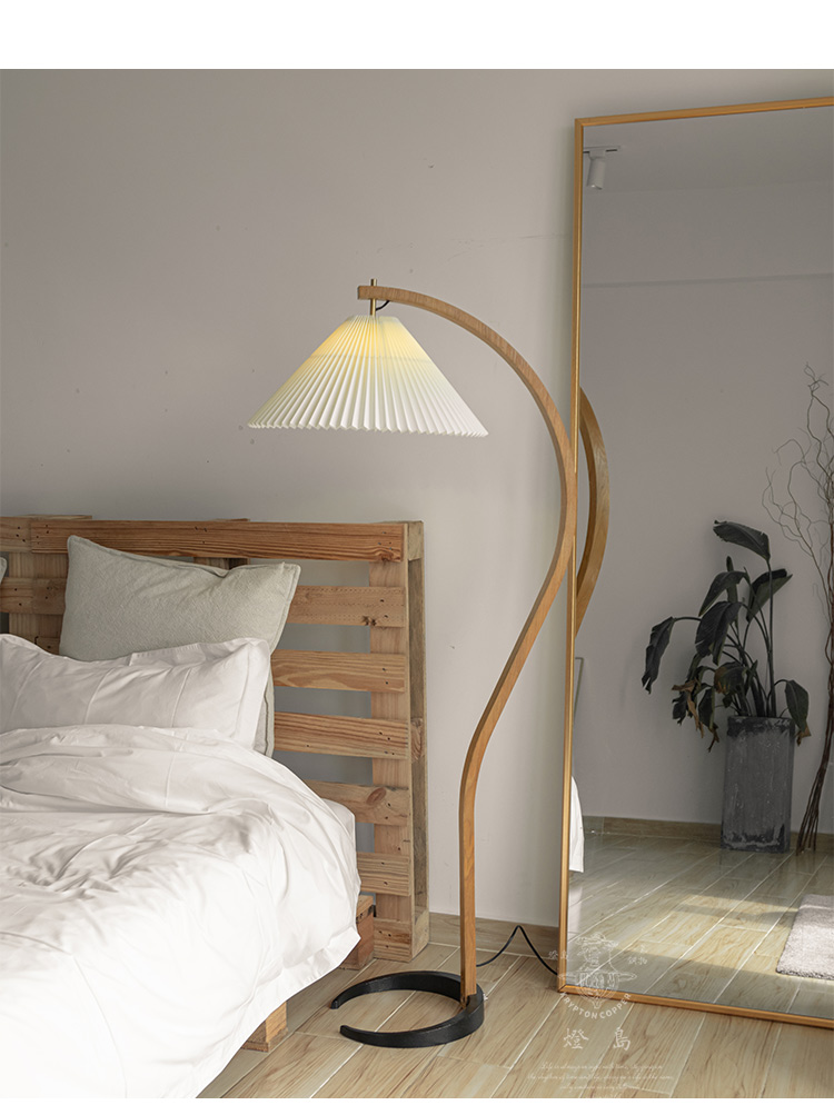 Đảo đèn gỗ rắn hình chữ S đèn sàn phòng khách cổ điển Bắc Âu cổ điển Pháp xếp ly phòng ngủ trong đèn đỏ ròng
