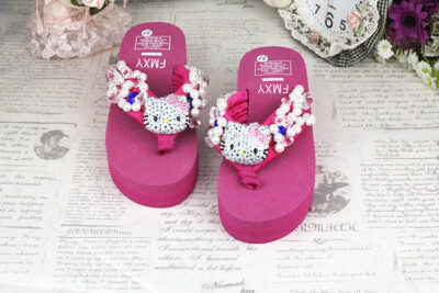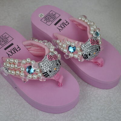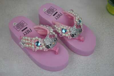 Đâu là bling mới đầy kim cương Phụ nữ KITTY may ngọc trai đá quý dép xỏ ngón bãi biển giày nêm bãi biển