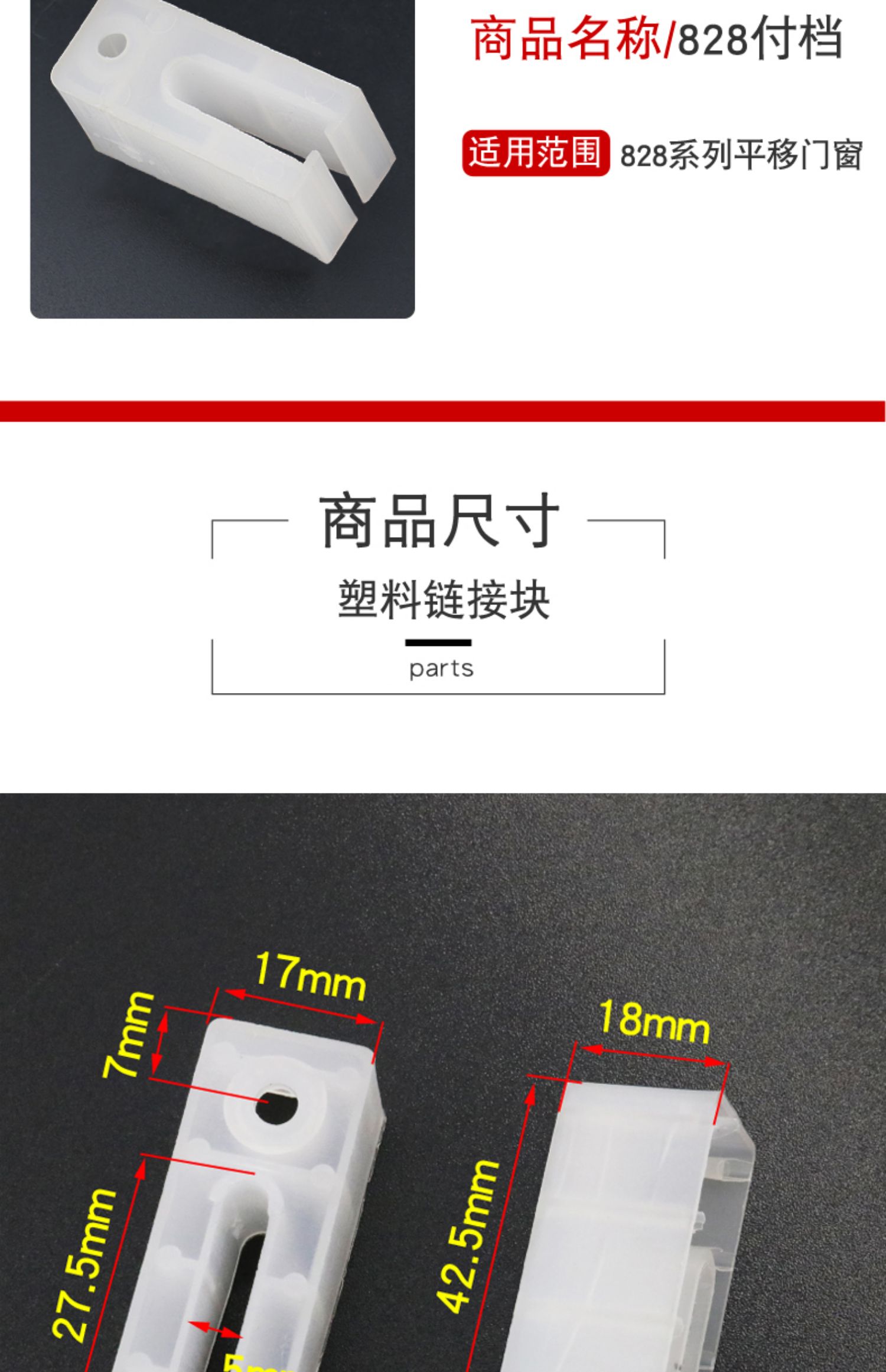 Đầu nối cửa sổ bằng hợp kim nhôm 828 và đầu nối kính cửa sổ bằng nhựa kiểu cũ phụ kiện kéo đẩy ròng rọc cố định khối nhựa
