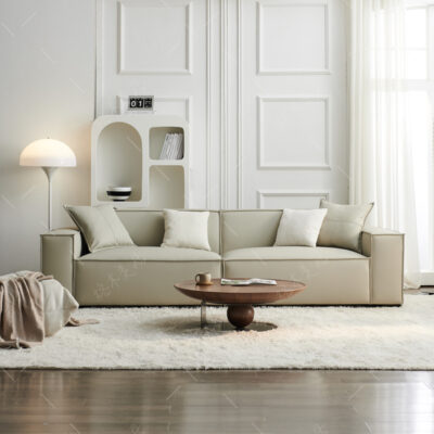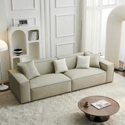 Đậu phụ khối Sofa da silicon Ý tối giản phù hợp với Internet Người nổi tiếng Căn hộ nhỏ Phòng khách thẳng Sofa da nghệ thuật bốn chỗ