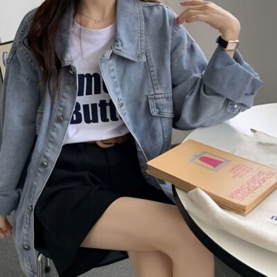 Đầu Thu 2023 Mới Áo Khoác Denim Thời Trang Dáng Rộng Áo Khoác Gió Phù Hợp Với Áo Khoác Dụng Cụ Thời Trang Nữ