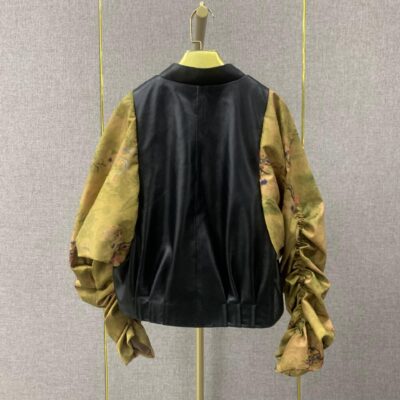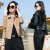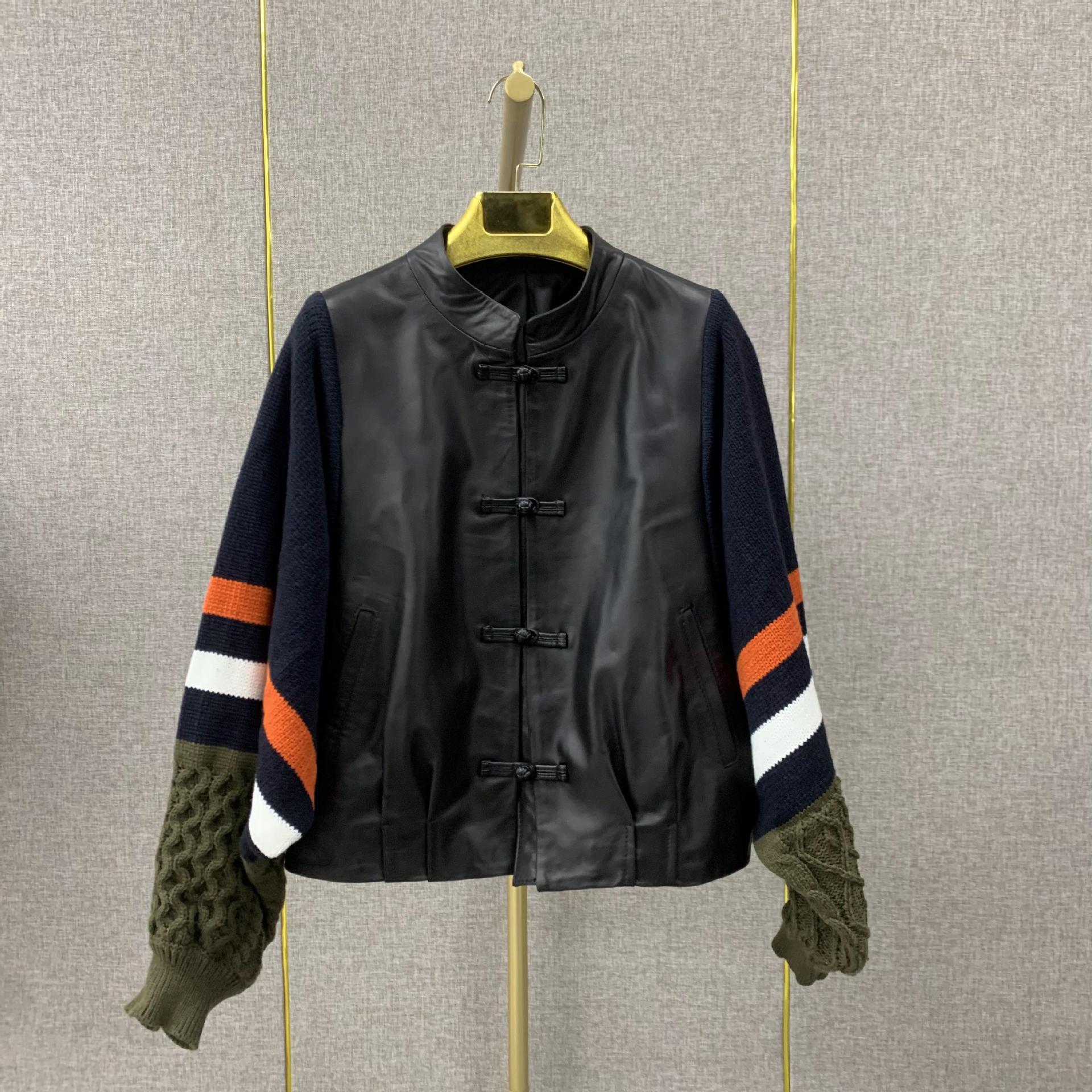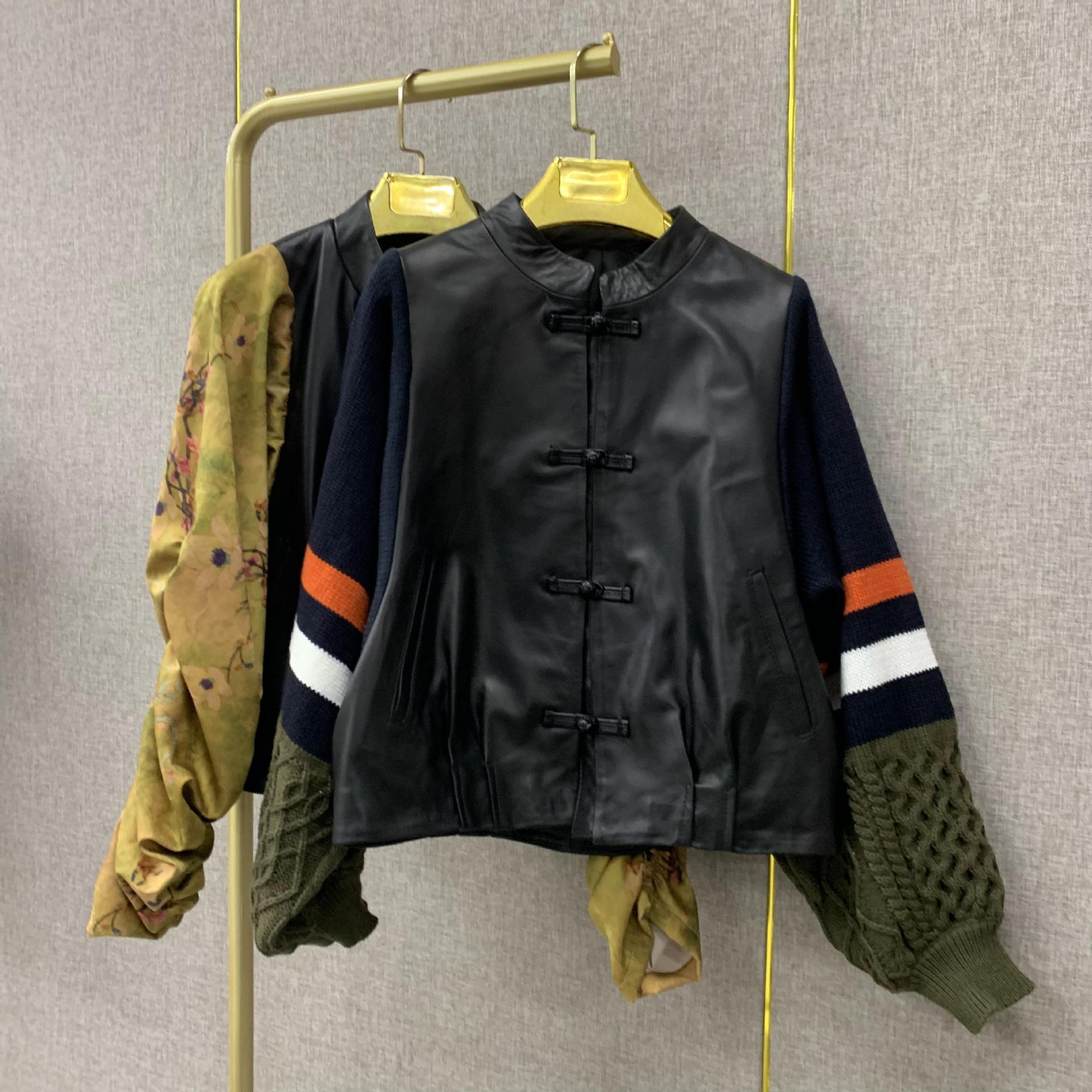 Đầu xuân mới nối da Tương Vân sợi áo khoác da ngắn phong cách đồng quê cổ đứng khóa cổ điển áo khoác da thường thời trang nữ