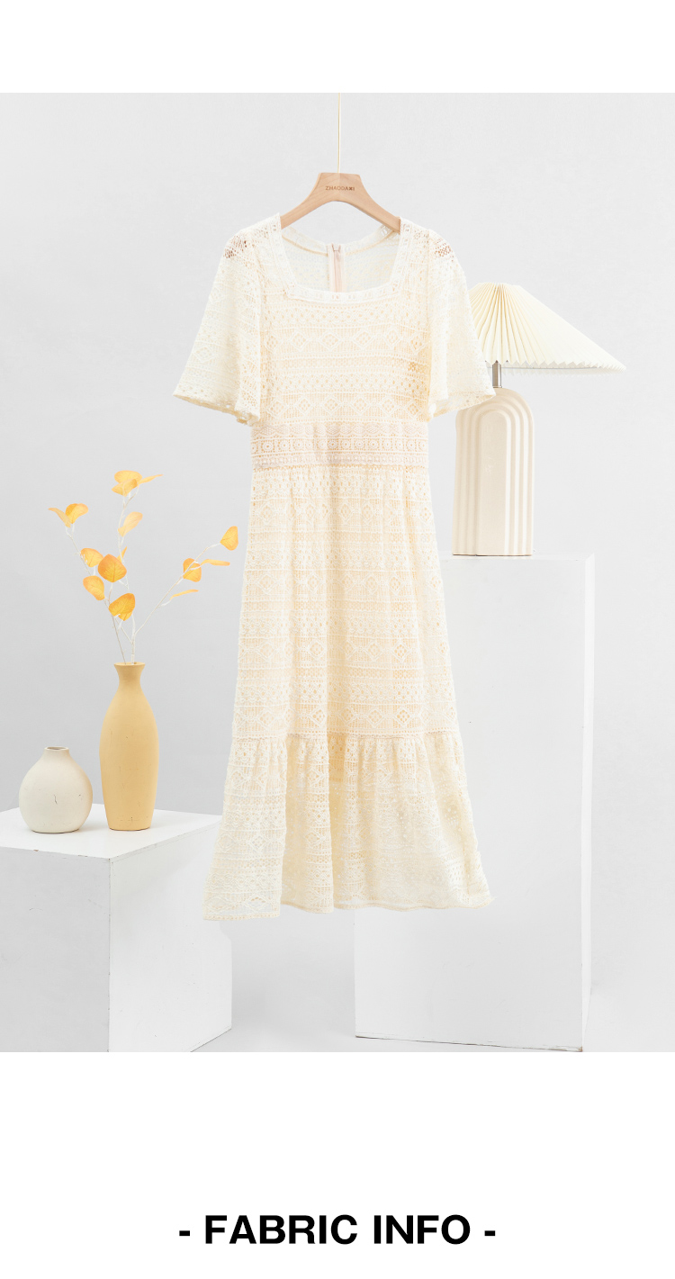 Daxi Homemade | In Wonderland | Cổ điển Pháp Cổ vuông 2022 Váy mỏng tính khí mới