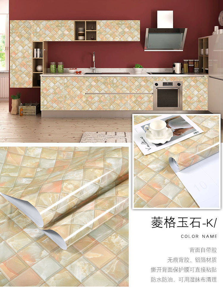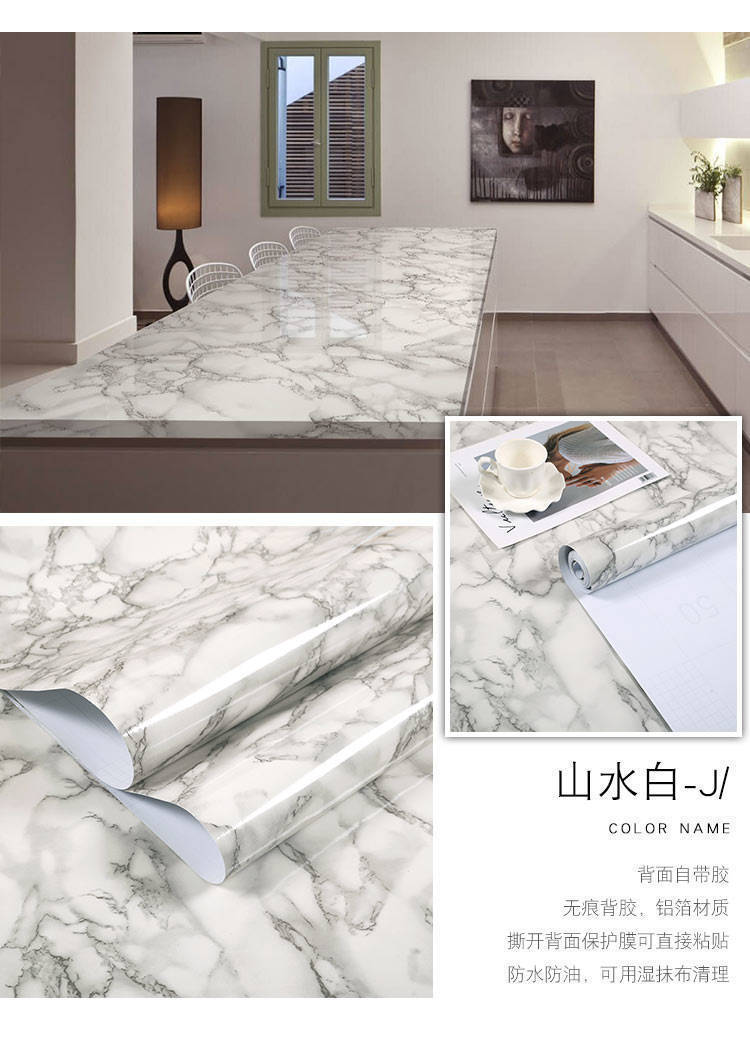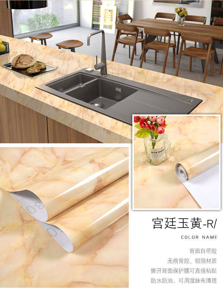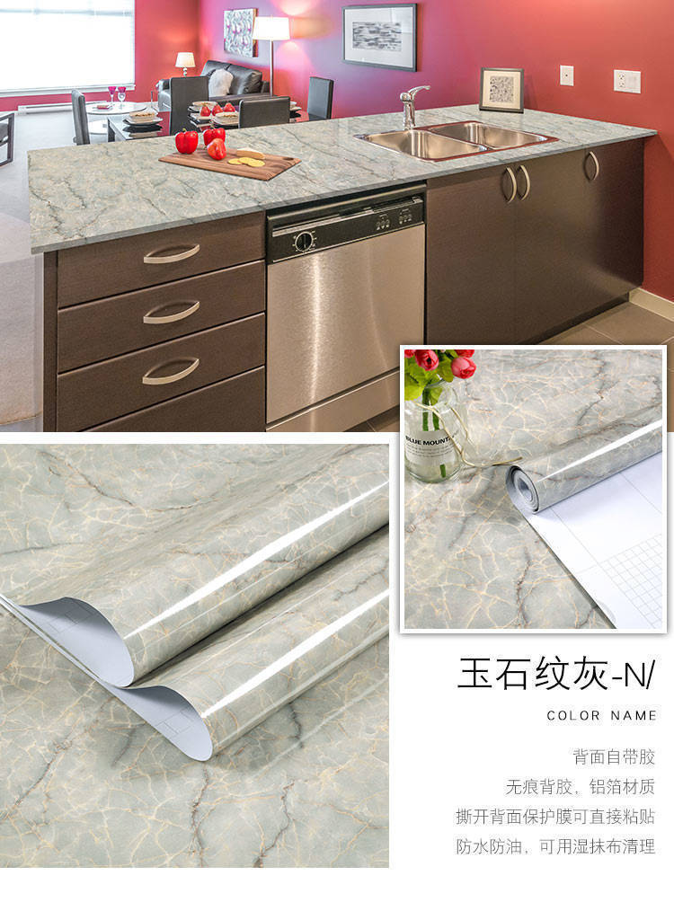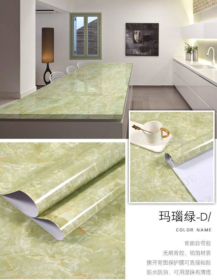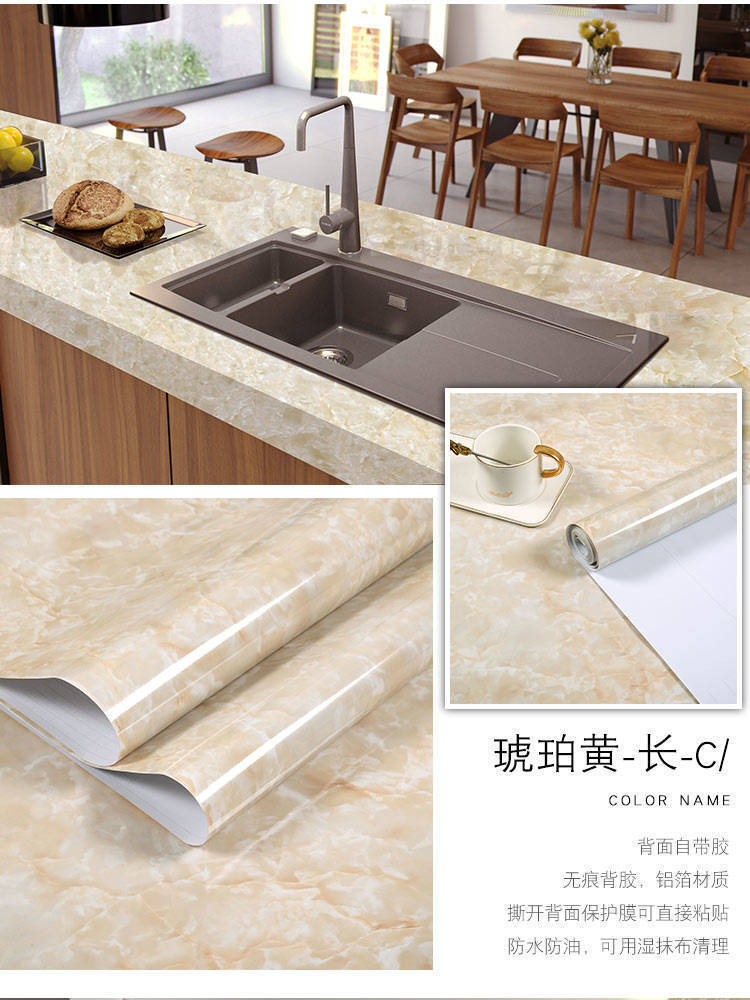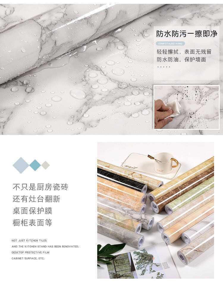 Dày 10 mét nhà bếp gạch chống thấm nước và dầu bằng đá cẩm thạch nhãn dán tủ máy tính để bàn đồ nội thất cũ đổi mới giấy dán tường tự dính