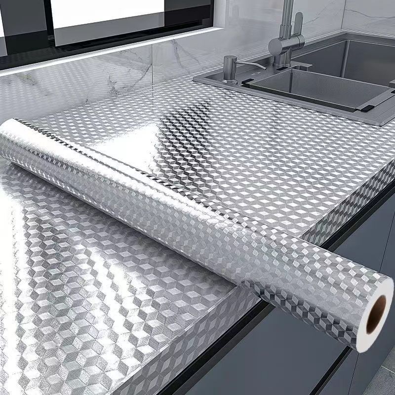Dày 20 mét miếng dán chống dầu nhà bếp miếng dán tường nhiệt độ cao giấy dán tường chống thấm nước và chống ẩm Giấy dán tường mặt bàn tủ giấy nhôm tự dính