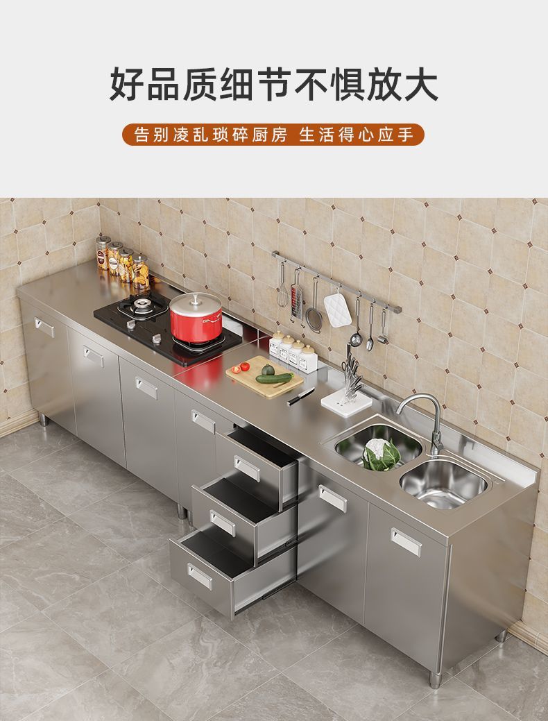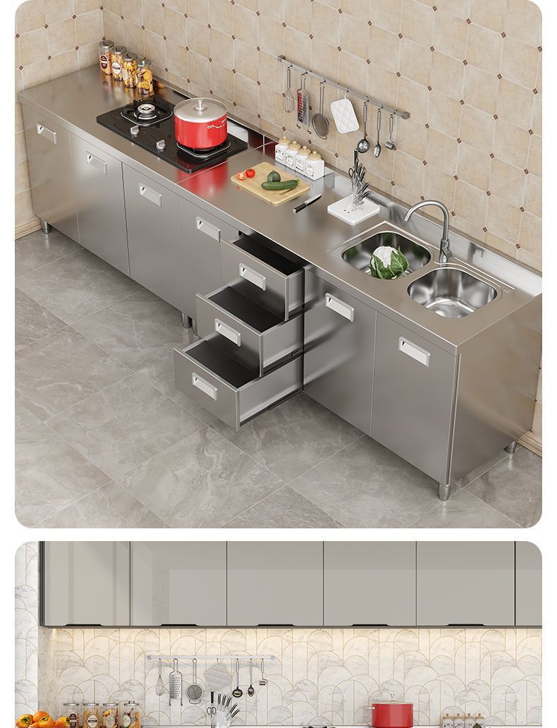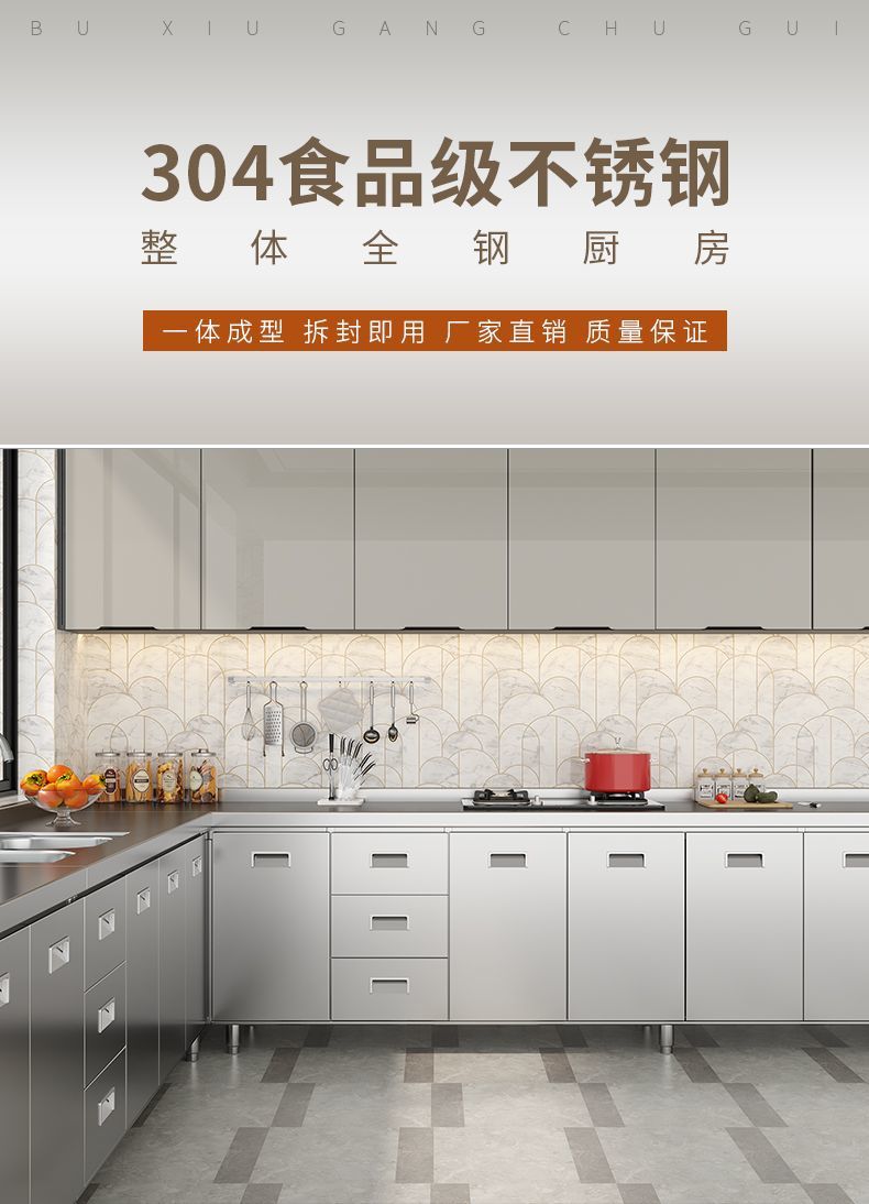 Dày 304 tổng thể tủ inox tích hợp đơn giản bếp tủ tất cả thép tủ khóa kết hợp nhà bếp tủ tủ