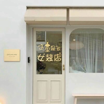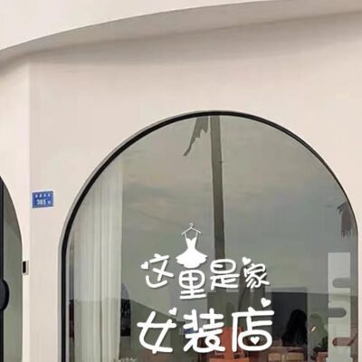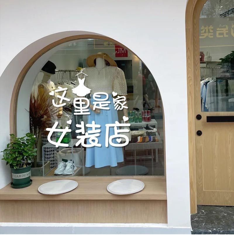 Đây là một cửa hàng quần áo nữ cửa hàng quần áo tối giản sáng tạo cửa hàng quần áo nữ cửa kính trang trí cửa sổ dán tường nền