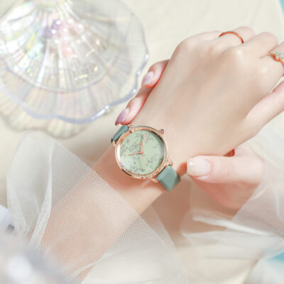 DAYBIRD mới loạt hoa anh đào thạch anh đồng hồ nữ dây da 3D hoa anh đào phong trào Nhật Bản đồng hồ nữ