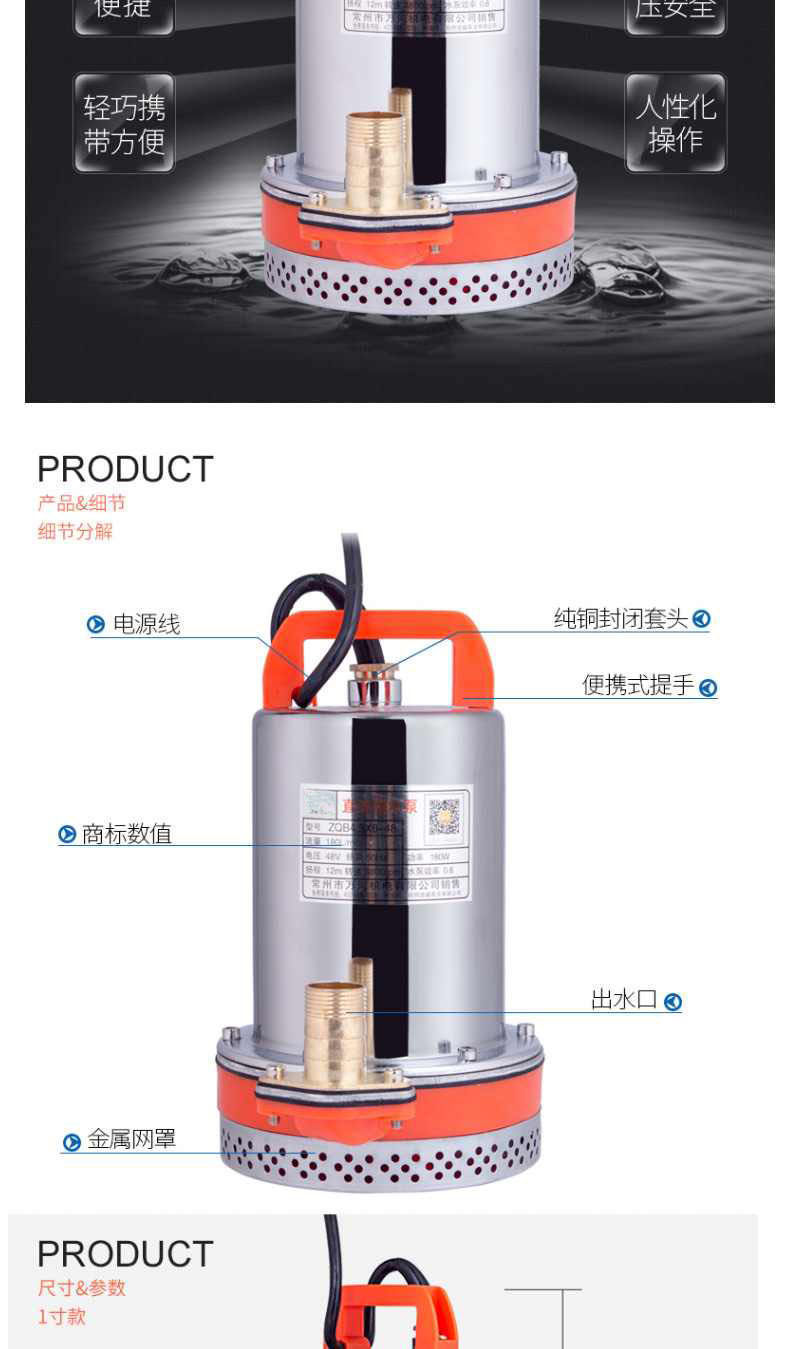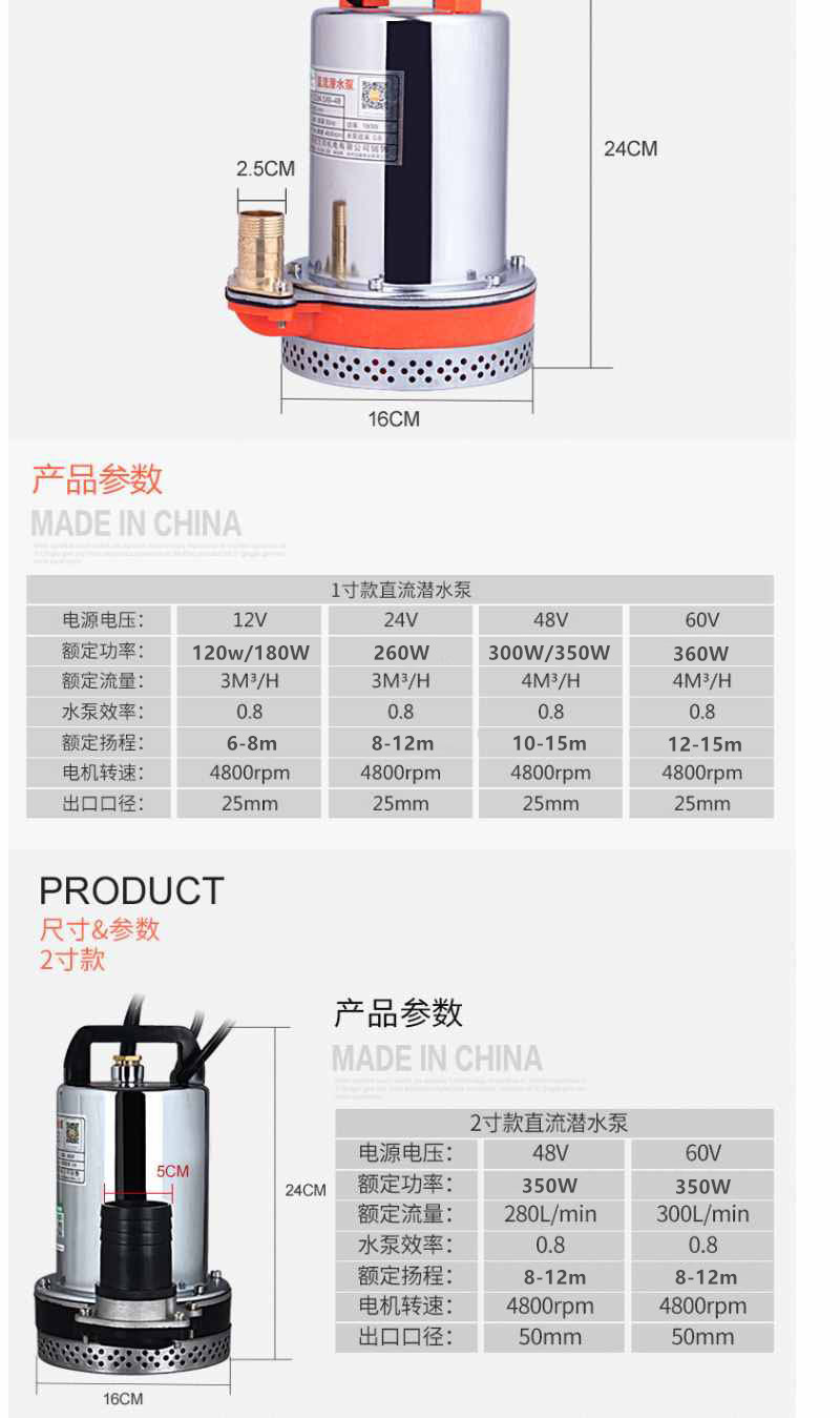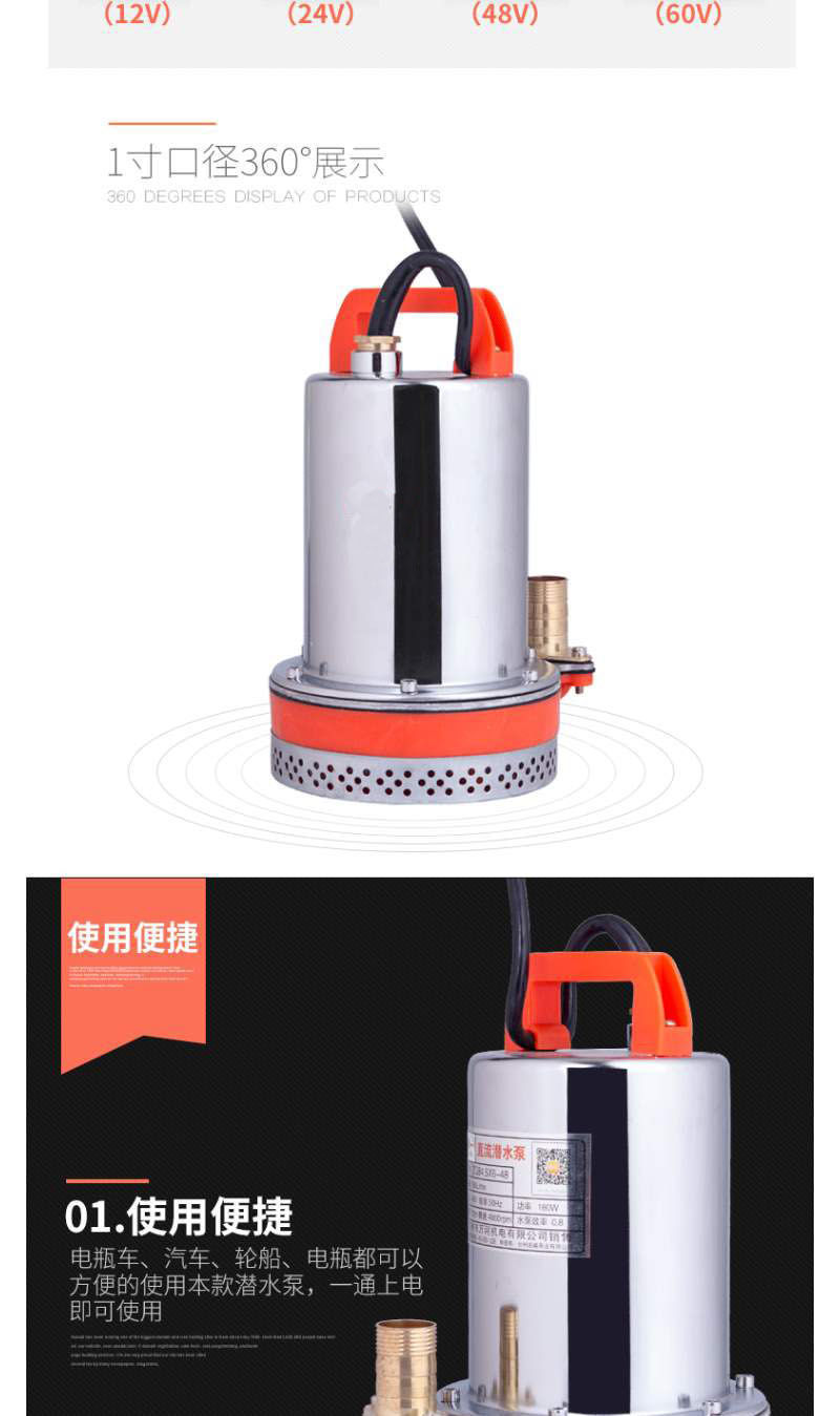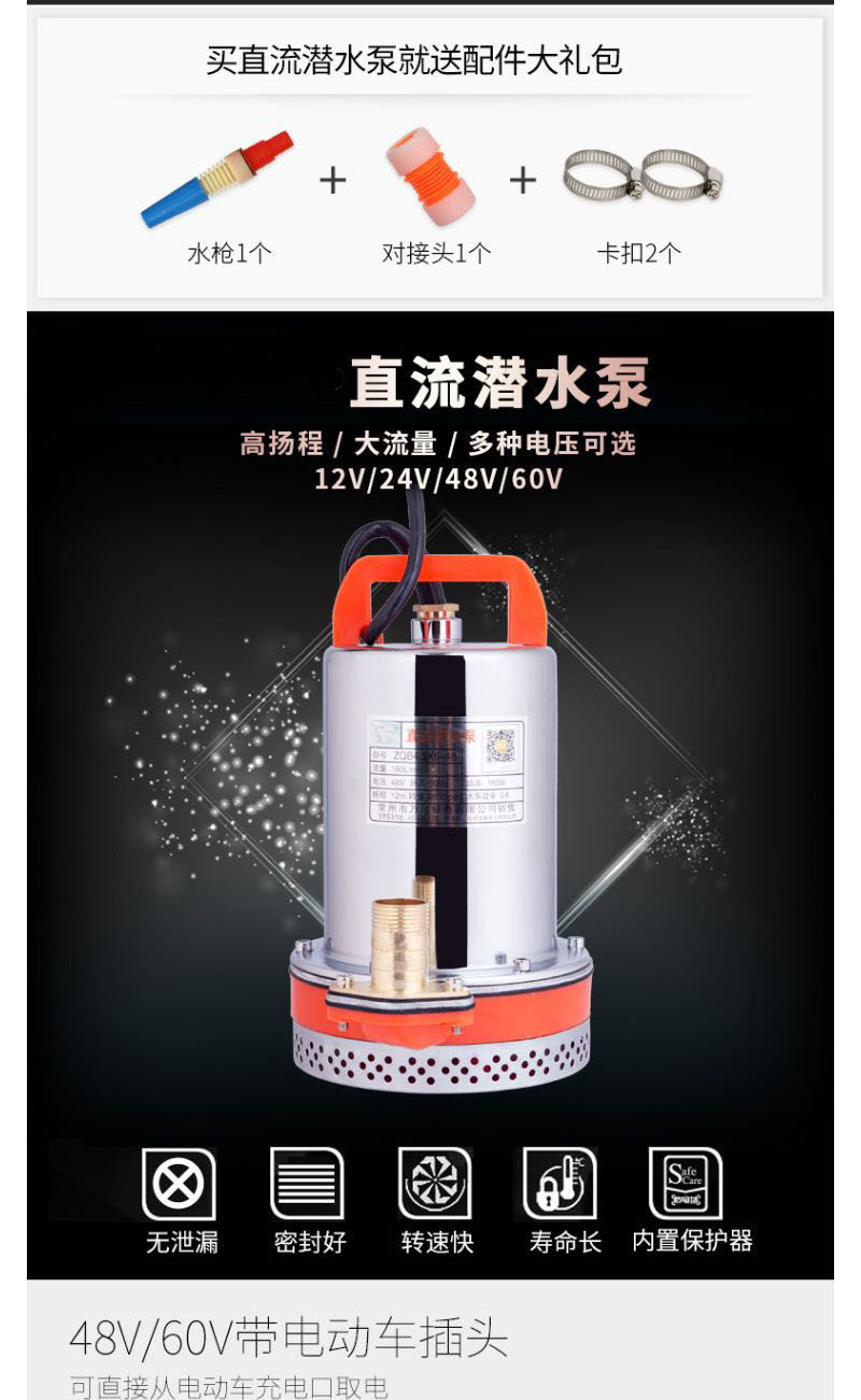 DC Máy Bơm Chìm 12V24V48V60V Volt Hộ Gia Đình Pin Máy Bơm Xe Ô Tô Điện Nhỏ Máy Bơm Nước Nông Nghiệp