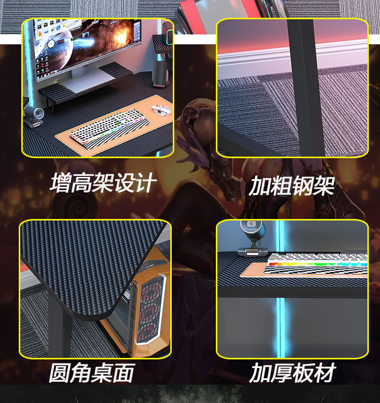 Đề xuất phổ biến ánh sáng sang trọng bàn ghế thể thao điện tử sợi carbon bàn máy tính máy tính để bàn đặt tại nhà đa chức năng bảng phát sóng trực tiếp ff