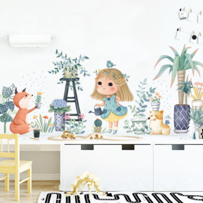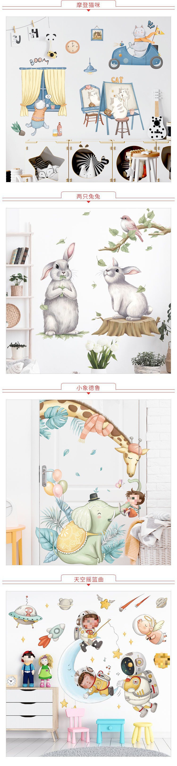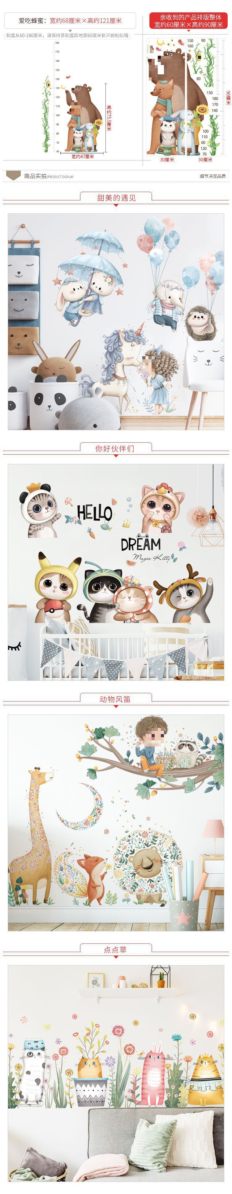 Decal Dán Tường Có Thể Tháo Rời Dán Tường Động Vật Bé Gái Trái Tim Ấm Áp Mẫu Giáo Phòng Trẻ Em Tự Dán Trang Trí Bán Buôn