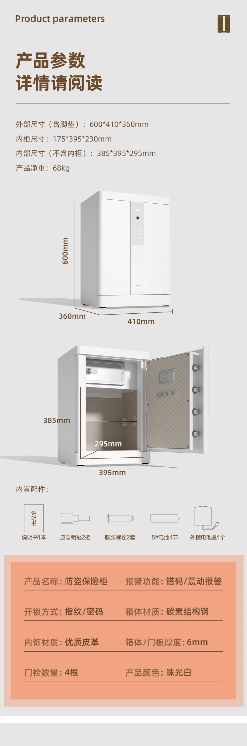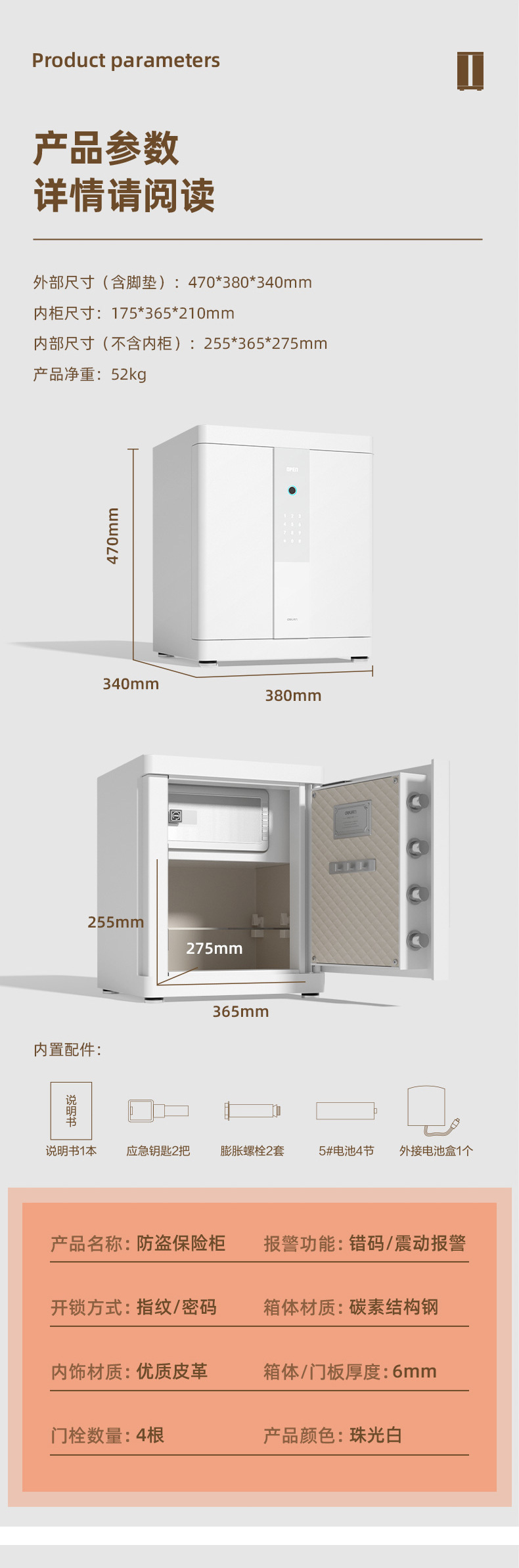 Trọng lượng: 52kg, 68kg, 94kg Mã sản phẩm: 4025/4026/4027 Thương hiệu: Deli/Deli Chức năng báo động: Sử dụng: Model cá nhân/hộ gia đình: két sắt chống trộm điện tử 4026 H600 (màu trắng) (Đài Loan)/ két sắt chống trộm điện tử 4025 H470 ( Trắng) (Đài Loan)/4027 két sắt chống trộm điện tử H800 (Trắng) (Đài Loan)/4027 két sắt chống trộm điện tử H800 (Trắng) (Đài Loan) Thông số kỹ thuật: 4025/4026/4027 Kích thước: 380*340*470mm xuất khẩu xuyên biên giới Nguồn cung cấp đặc biệt: Không Loại: Vân tay mật khẩu an toàn