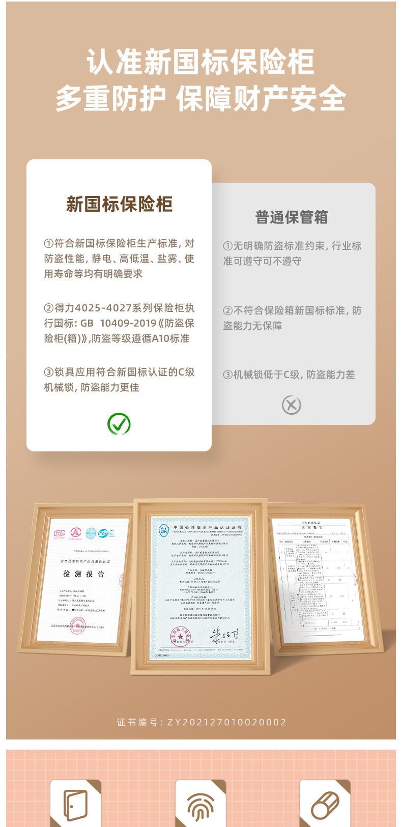 Sản phẩm nổi bật với các tính năng: Deli 4025 két sắt an toàn hộ gia đình 4027 vân tay mật khẩu két sắt tiêu chuẩn quốc gia mới 4026 chống trộm điện tử. Quý khách có nhu cầu mua Két sắt nhập khẩu vui lòng liên hệ với chúng tôi để được tư vấn hỗ trợ. Dịch vụ mua hàng Trung Quốc sẽ hỗ trợ quý khách mua hàng từ nhà cung cấp và giao tới tận tay quý khách hàng..