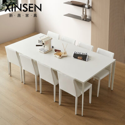 Delifeng bảng đá trắng tinh khiết bàn ăn hợp kim nhôm bàn trắng tối giản nhà căn hộ nhỏ bàn ăn tối giản hiện đại