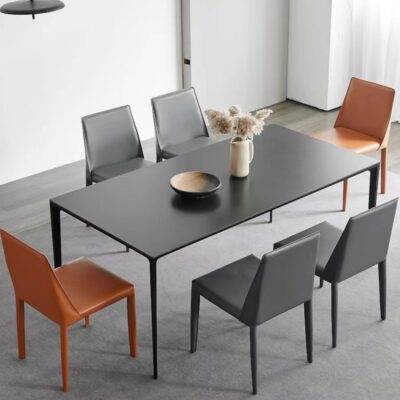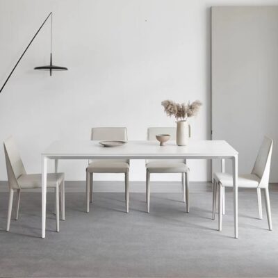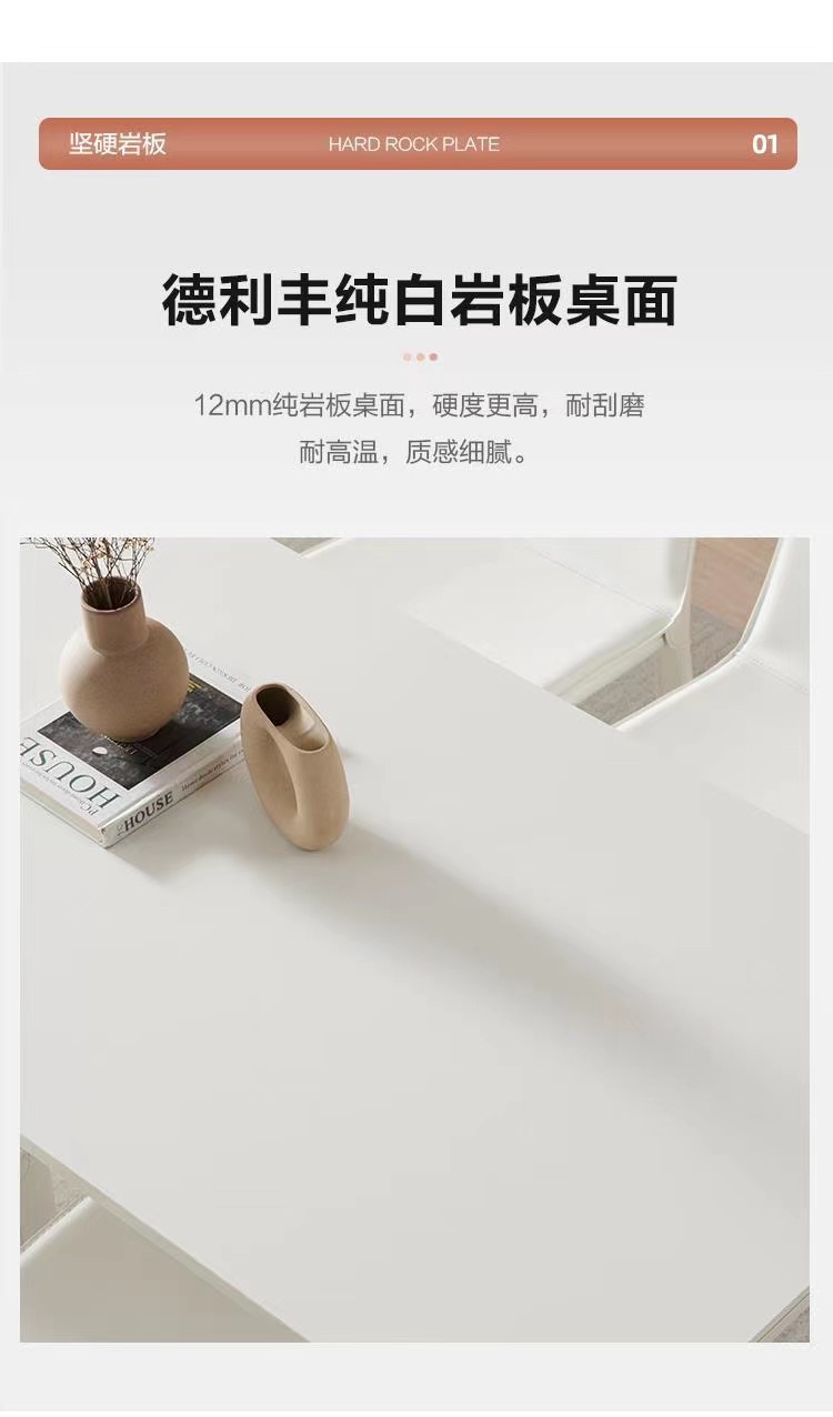 Delifeng phiến đá trắng tinh khiết bàn ăn nhà gia đình Ý tối giản hiện đại tối giản hợp kim nhôm hình chữ nhật ánh sáng sang trọng – Bàn ăn nhập khẩu cao cấp