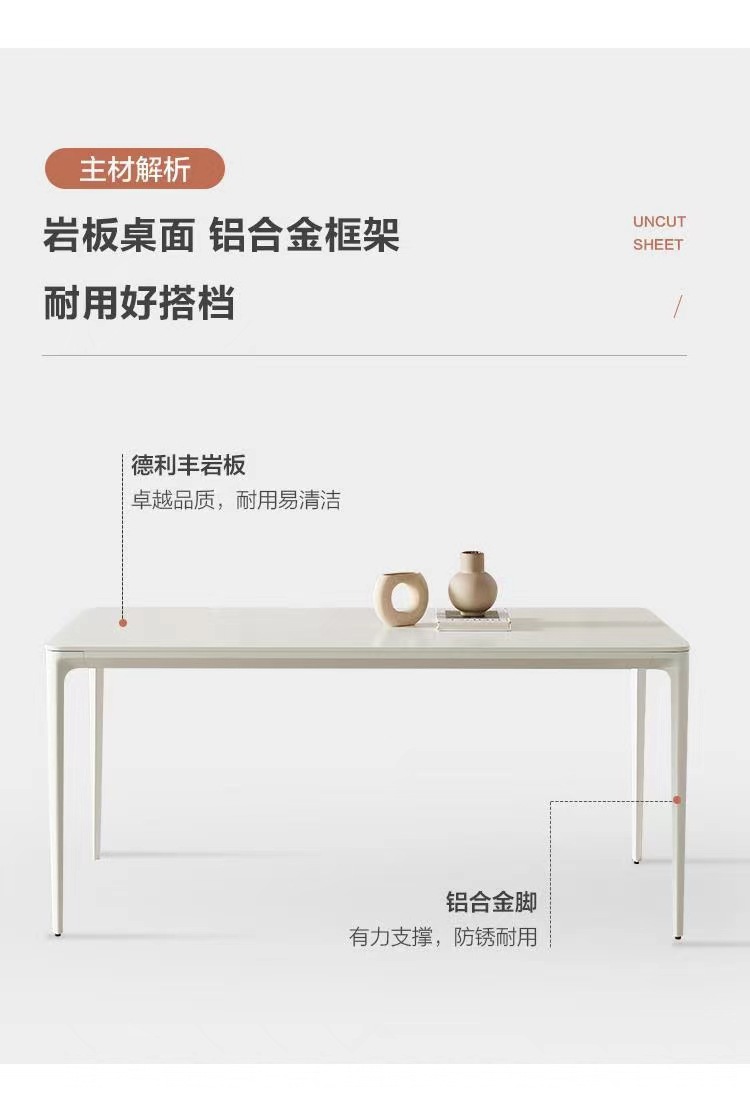 Delifeng phiến đá trắng tinh khiết bàn ăn nhà gia đình Ý tối giản hiện đại tối giản hợp kim nhôm hình chữ nhật ánh sáng sang trọng là sản phẩm nổi bật trong dòng bàn ăn nhập khẩu, thiết kế hiện đại và sang trọng, phù hợp với nhiều không gian nội thất cao cấp.