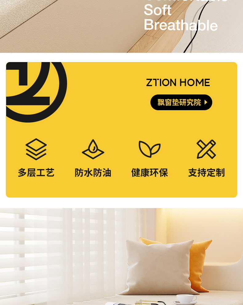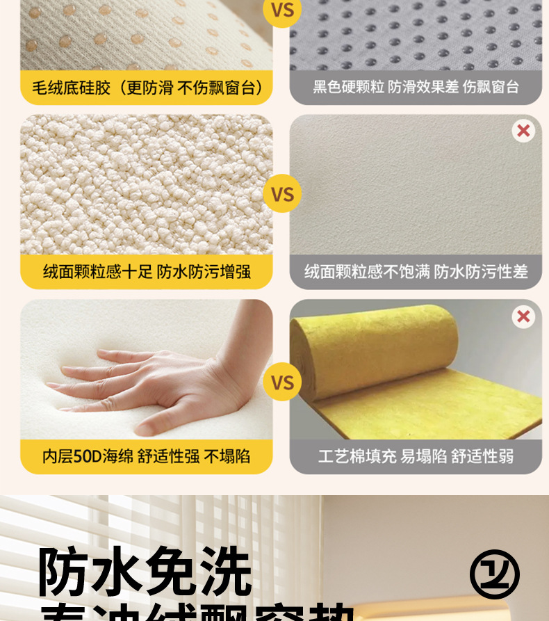Đệm bệ cửa sổ nhung nhung không thấm nước đệm bậu cửa sổ bốn mùa phổ thông 2023 đệm xốp mới Đệm ban công có thể được tháo ra và giặt