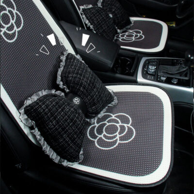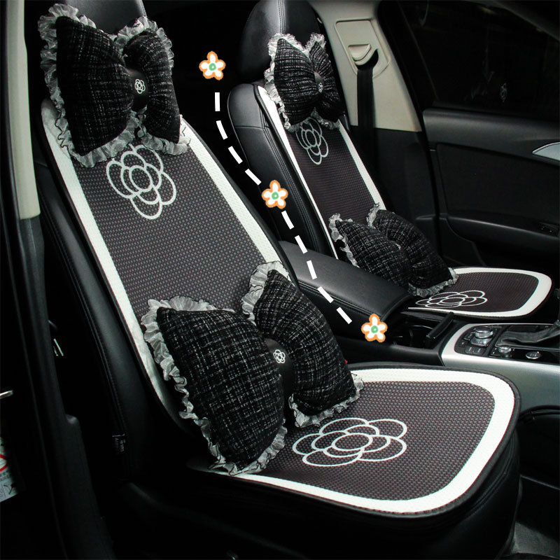Đệm lót ghế ô tô bốn mùa đa năng băng lụa thoáng khí thấm hút mồ hôi đệm lót ghế ô tô ren hoa trà nhỏ tựa đầu gió thơm