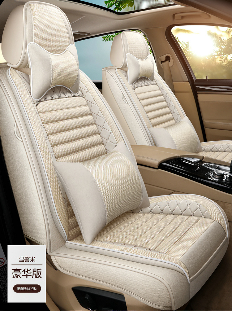 Đệm lót ghế ô tô bốn mùa đa năng nội thất ô tô đệm ghế ô tô nữ trọn bộ trang trí bọc ghế vải lanh trọn gói đệm