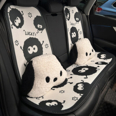 Đệm lót ghế ô tô mùa hè hoạt hình dễ thương đệm mát bốn mùa đệm ngồi đa năng lưới đỏ thoáng khí vòng eo nhỏ trang trí đơn nữ