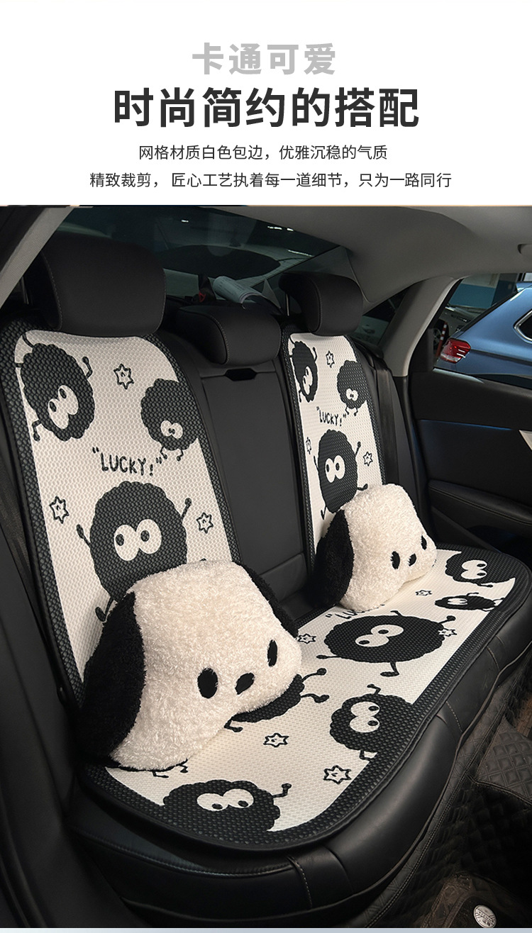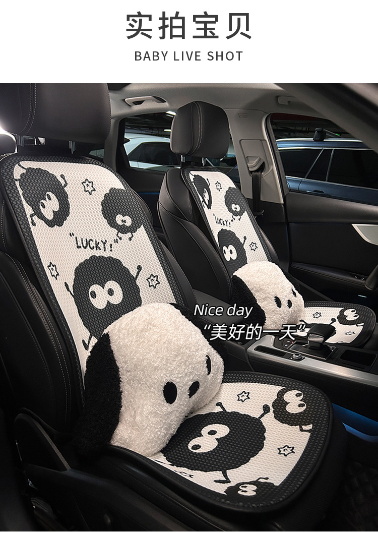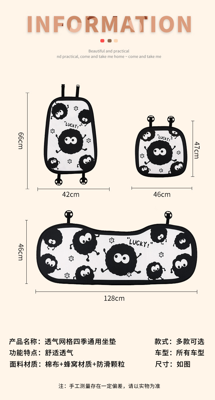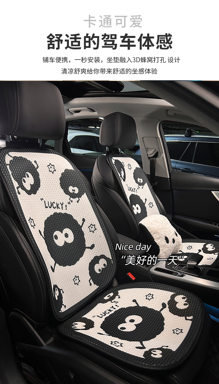 Đệm lót ghế ô tô mùa hè hoạt hình dễ thương đệm mát bốn mùa đệm ngồi đa năng lưới đỏ thoáng khí vòng eo nhỏ trang trí đơn nữ