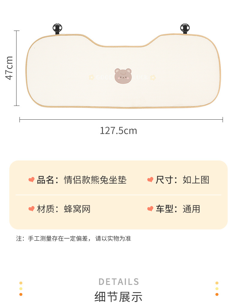 Đệm lót ghế ô tô mùa hè mát đệm băng lụa đơn nữ dễ thương Đệm lót ghế ô tô thông thoáng bốn mùa phổ thông mùa hè
