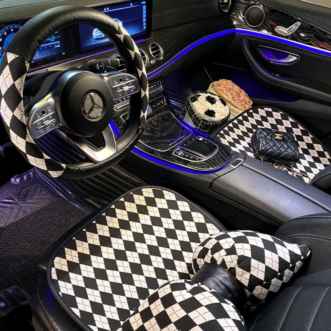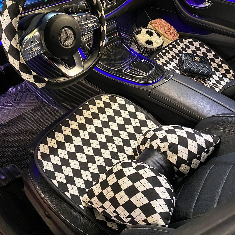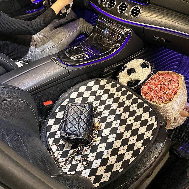 Đệm lót ghế ô tô vải lanh hình thoi lưới đỏ phong cách nữ thần eo nhỏ thông thoáng đệm lót ghế nữ bốn mùa đệm lót ghế ô tô rắm đệm