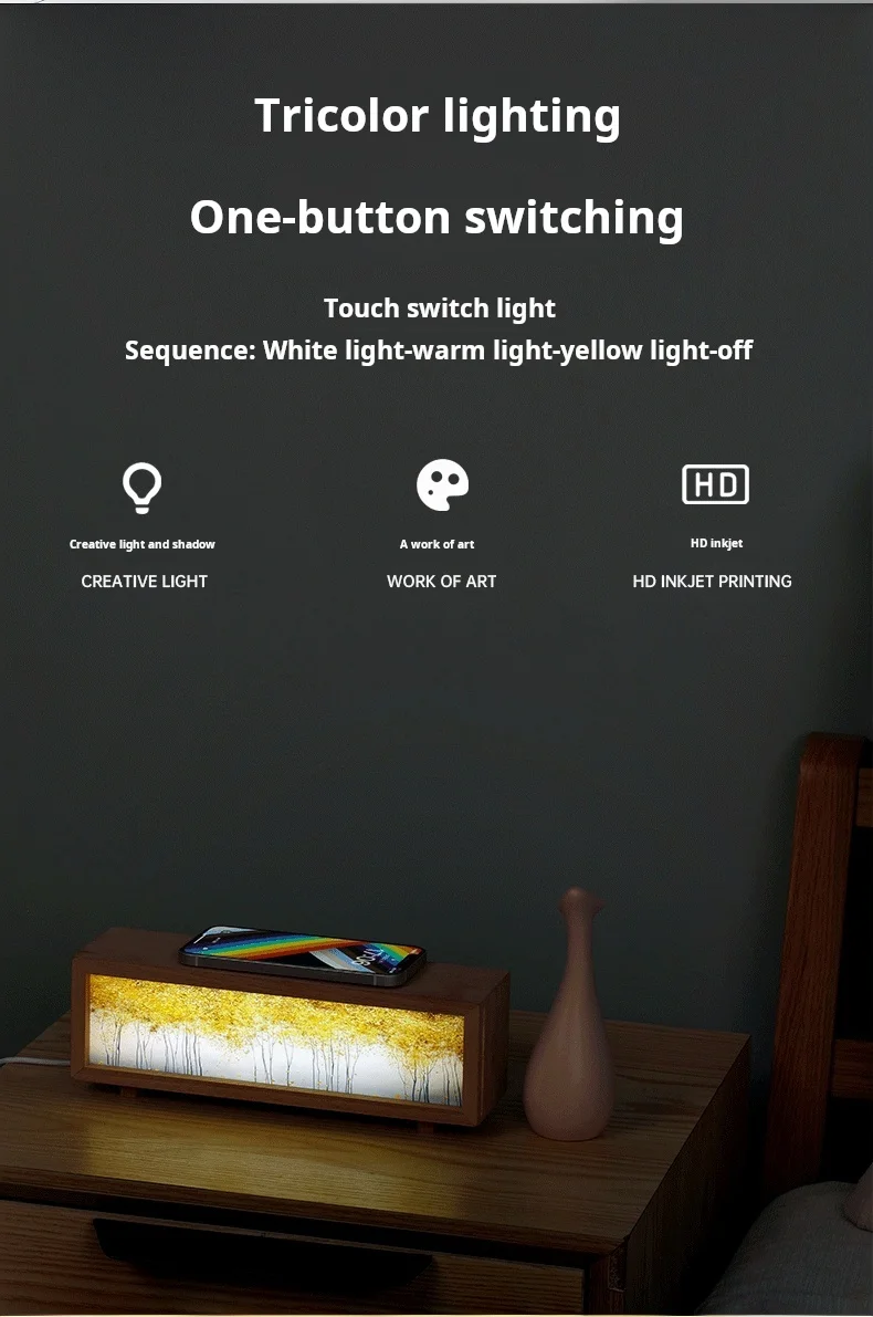 2024 Mới Bằng Gỗ Sạc Không Dây Đèn Tranh Để Bàn Đèn Trang Trí Đầu Giường Bầu Không Khí Trang Trí Nhỏ Đèn Ngủ. Quý khách có nhu cầu mua Đèn để bàn nhập khẩu vui lòng liên hệ với chúng tôi để được tư vấn hỗ trợ. Dịch vụ mua hàng Trung Quốc sẽ hỗ trợ quý khách mua hàng từ nhà cung cấp và giao tới tận tay quý khách hàng..Cần có pin:Không Chứng nhận:ce Loại:Đèn ngủ Hình dạng:Hình chữ nhậtLà bóng đènBao gồm:Không Tên thương hiệu:BAIHUANXuất xứ:Trung Quốc Đại lụcLoại sản phẩm:Đèn ngủTên:Sạc đèn kiểu dáng:Nai sừng tấm, bạch quả, thuyền buồm,Kích thước bến cảng:266 *90*72mm Chất liệu: Gỗ nguyên khối, acrylic, linh kiện Cấu hình bên trong sản phẩm: Máy chủ * 1, cáp dữ liệu * 1, hướng dẫn sử dụng * 1