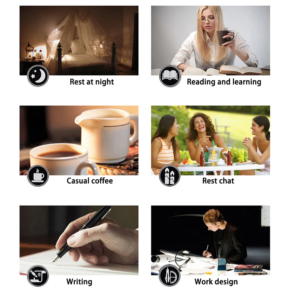 2.The LED light is energy efficient and environmental friendly with high light transmittance lampshade, is bright and gentle, no irritation to human eyes. 3 lighting color,5 adjustable brightness.