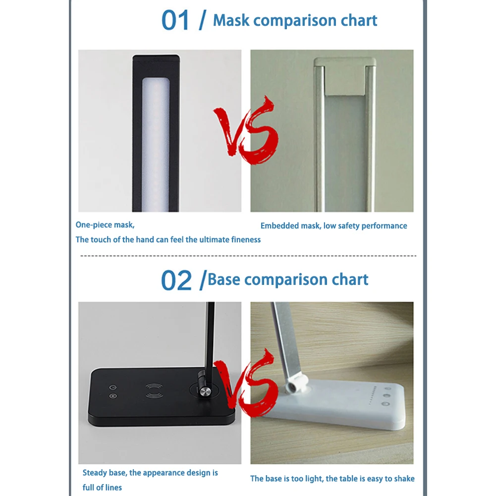 5 Chế Độ Chiếu Sáng Đèn LED Để Bàn Đế Sạc Không Dây Đèn LED Đọc Sách Độ Sáng Có Thể Điều Chỉnh Phòng Ngủ Đèn LED Để Bàn USB. Quý khách có nhu cầu mua Đèn để bàn nhập khẩu vui lòng liên hệ với chúng tôi để được tư vấn hỗ trợ. Dịch vụ mua hàng Trung Quốc sẽ hỗ trợ quý khách mua hàng từ nhà cung cấp và giao tới tận tay quý khách hàng..Là thiết bị thông minh:không Tính năng: Trạm sạc không dây Đèn bàn LED Lớp hoàn thiện: Niken chải Số kiểu: đèn bàn led Chất liệu: PP/Nhựa Loại công tắc: Công tắc bật/tắt cảm ứng Bảo hành: 6 tháng Loại đế: Nêm Kiểu dáng: Nguồn sáng hiện đại: Bóng đèn LED Loại bóng: Không bóng Có thể điều chỉnh độ sáng: Có Chất liệu thân: ABS Chứng nhận: CCC, ce Điện áp: 5V Nguồn điện: DC Là bóng đèn Bao gồm: Có Tên thương hiệu: Coquimbo Xuất xứ: Trung Quốc đại lục Loại sản phẩm: Đèn bàn Tính năng 1: đèn bàn làm việc Tính năng 2: Đèn bàn USB Tính năng 3: Không bao gồm bộ chuyển đổi Đèn bàn: Đèn bàn Đèn bàn: Đèn bàn
