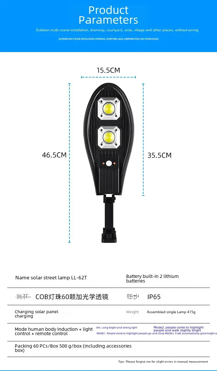 62t Tích hợp đèn led năng lượng mặt trời Cảm biến ngoài trời Đèn đường nông thôn không thấm nước Điều khiển từ xa Tuổi thọ cao. Quý khách có nhu cầu mua Đèn trong nhà nhập khẩu vui lòng liên hệ với chúng tôi để được tư vấn hỗ trợ. Dịch vụ mua hàng Trung Quốc sẽ hỗ trợ quý khách mua hàng từ nhà cung cấp và giao tới tận tay quý khách hàng..Có thể điều chỉnh độ sáng: Có Cấp độ bảo vệ: IP65 Xuất xứ: Trung Quốc đại lục